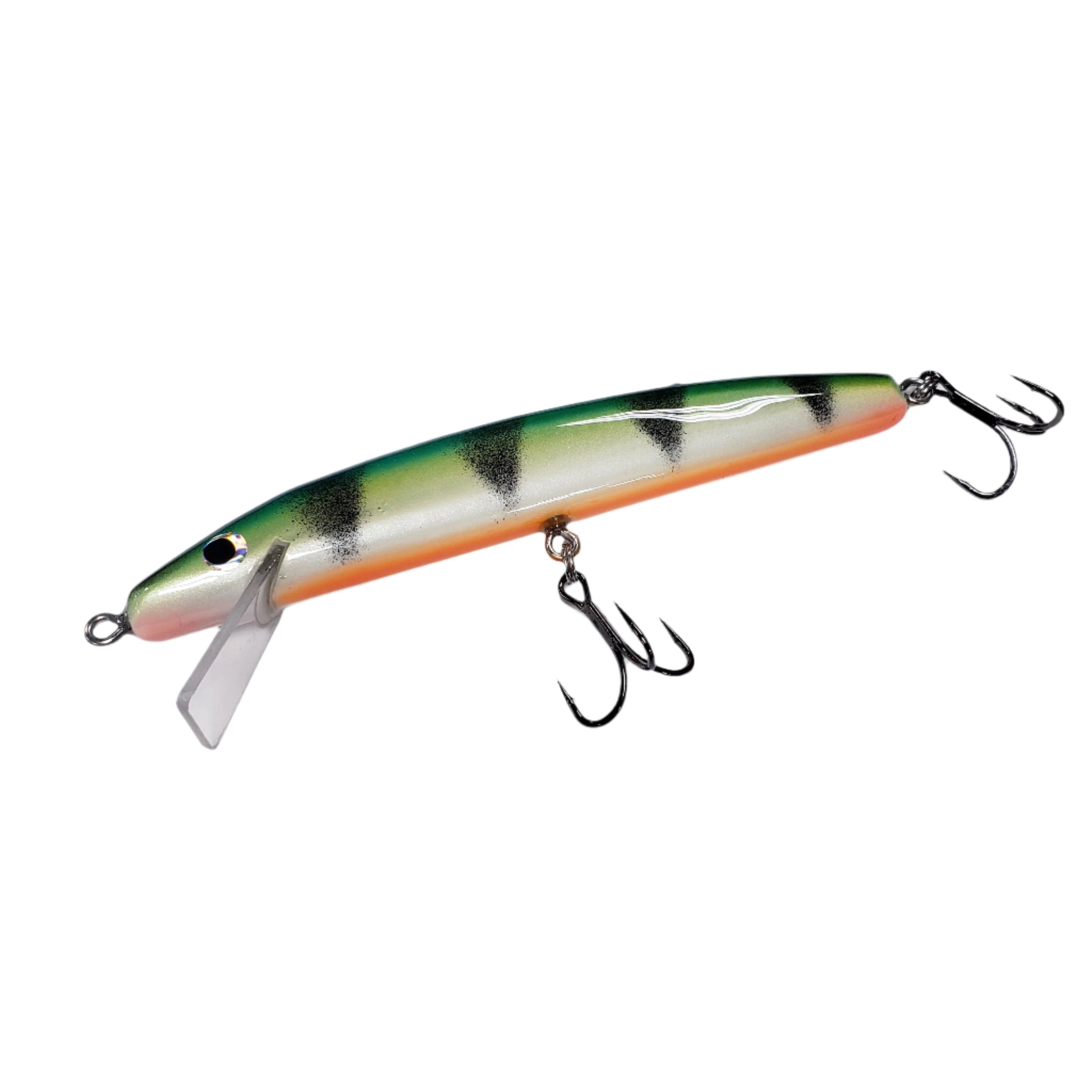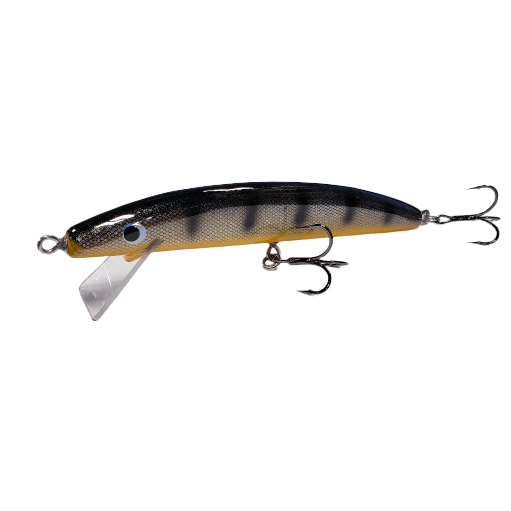 The Crazy Cranks is THE most fun you will have casting this year. It is an 8 inch (20 cm) 1.5oz (45g) cedar screw eye construction. It has a square lip and is made to target the top 3 feet of the water column. It excels along weed edges or shallow rocks. It can be trolled or casted with long sweeps or steady jerks. It's 2 hook construction makes it tail heavy and a joy to cast. It comes with 2/0 2x Barbarian hooks. Try one and let the Crazy Crank speak for itself.