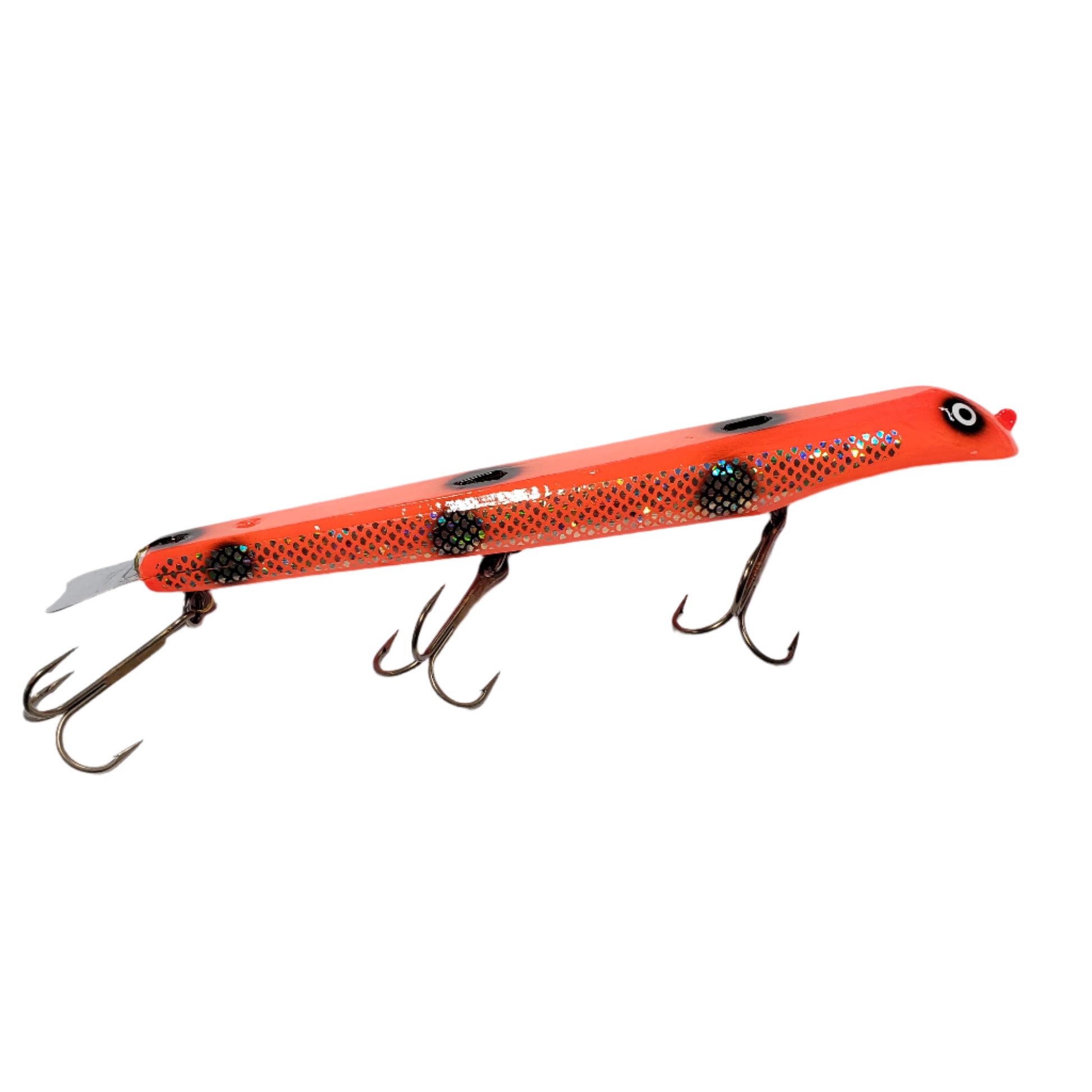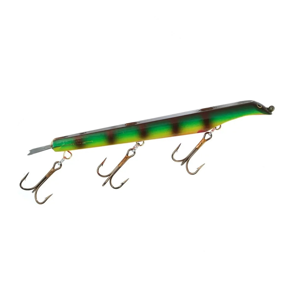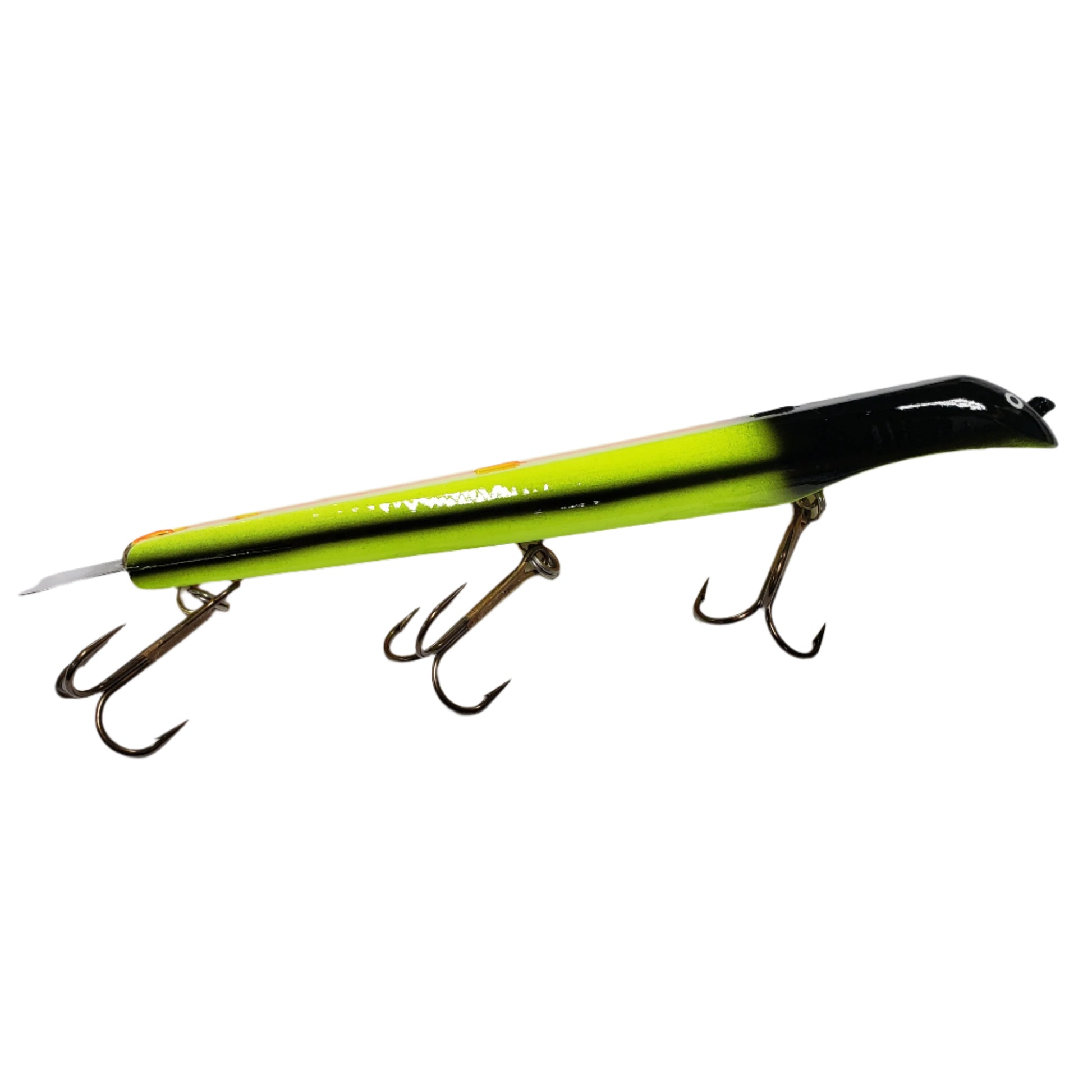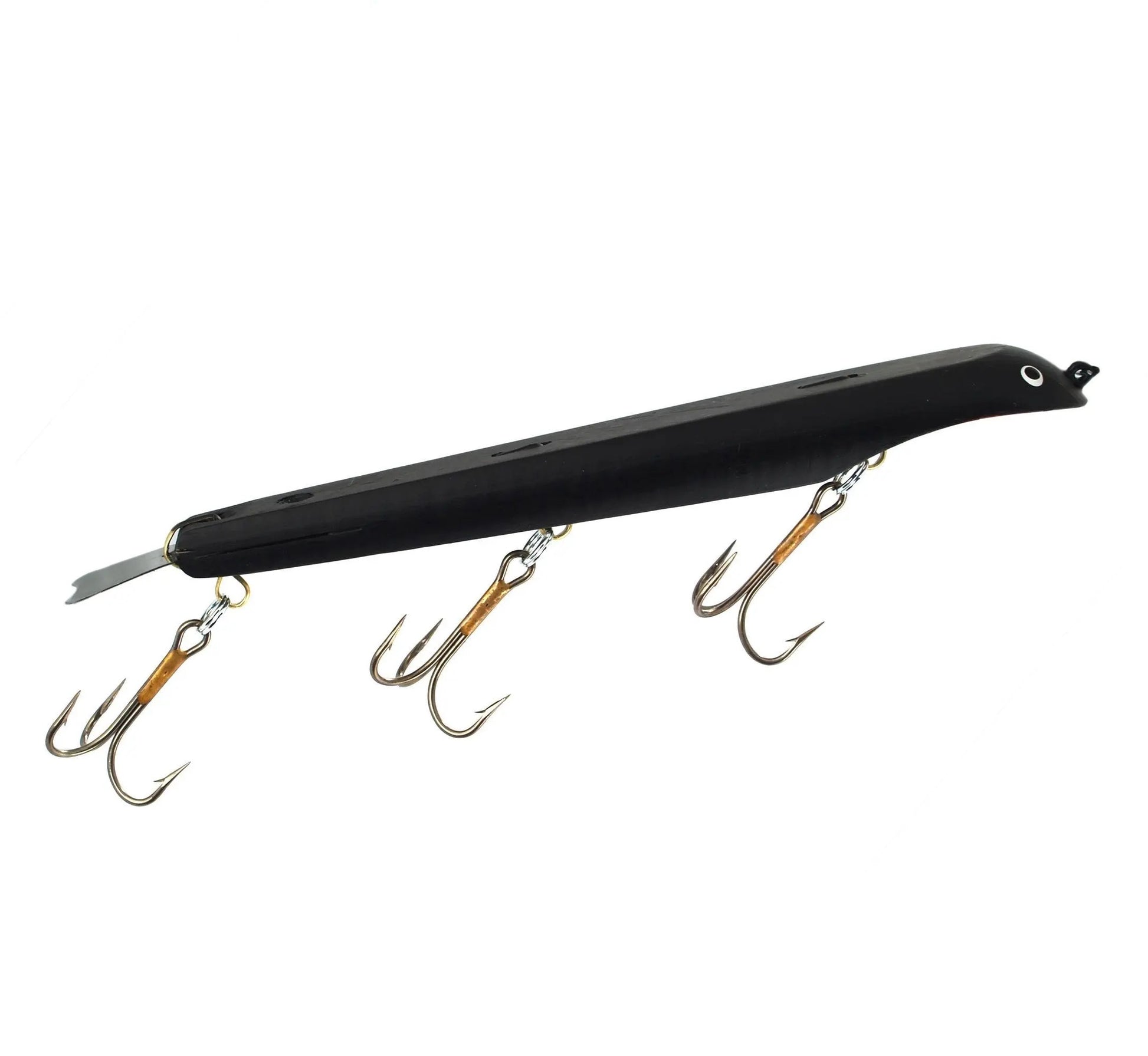 The Suick 10" Super Sized Non-Weighted Thriller is designed for anglers seeking exceptional action in a large-profile lure. Crafted from wood and equipped with three durable 5/0 treble hooks, this 10-inch lure weighs 2 1/4 ounces to deliver a commanding presence in the water. Its non-weighted design ensures a natural, enticing movement that triggers strikes from serious game fish. Perfect for targeting bigger species, this Thriller combines size and performance for expert anglers demanding effective, reliable gear.
