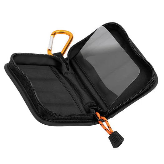The perfect pocket-sized organizer for the angler on the move. Made of durable nylon and outfitted with an oversize plastic zipper to keep your lures safely housed and allow airflow to keep them dry-preventing rust. A convenient oversized pull-tab makes for easy access even with wet hands. The internal foam panels keep hook points clean, dry, secure and safe for travel. Bait finesse anglers will also find the foam internal panels ideal for securing small topwater baits, micro-chatterbaits, micro swimbaits, and spinners. Comes equipped with a carabiner clip to attach on backpacks, hip-packs, bicycles, or belt-loops. The Presso wallet comfortably accommodates spoons or mini jigs.