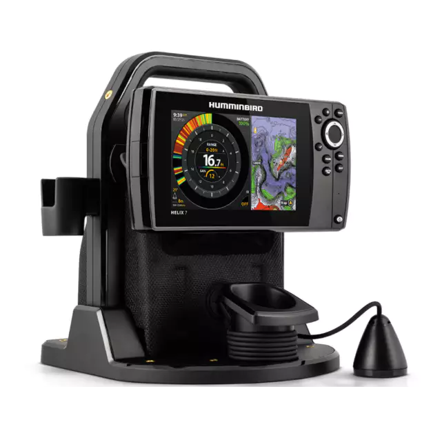 - The ICE HELIX 7 CHIRP GPS G4 will not only help you catch the fish, it will help you find where to catch them. Take advantage of outstanding features like Dual Spectrum CHIRP Sonar with 3/4" target separation, CHIRP Interference Rejection, built-in GPS with Humminbird Basemap and compatibility with both LakeMaster or Navionics maps. Additional features designed specifically for the ICE angler include Auto Chart Live ICE, Jig Charge Mode, split-screen views, premium shuttle and 15Ah lithium battery separate this unit from all others on the ICE. Take it all in on an ultra-bright 7" full color LCD display.