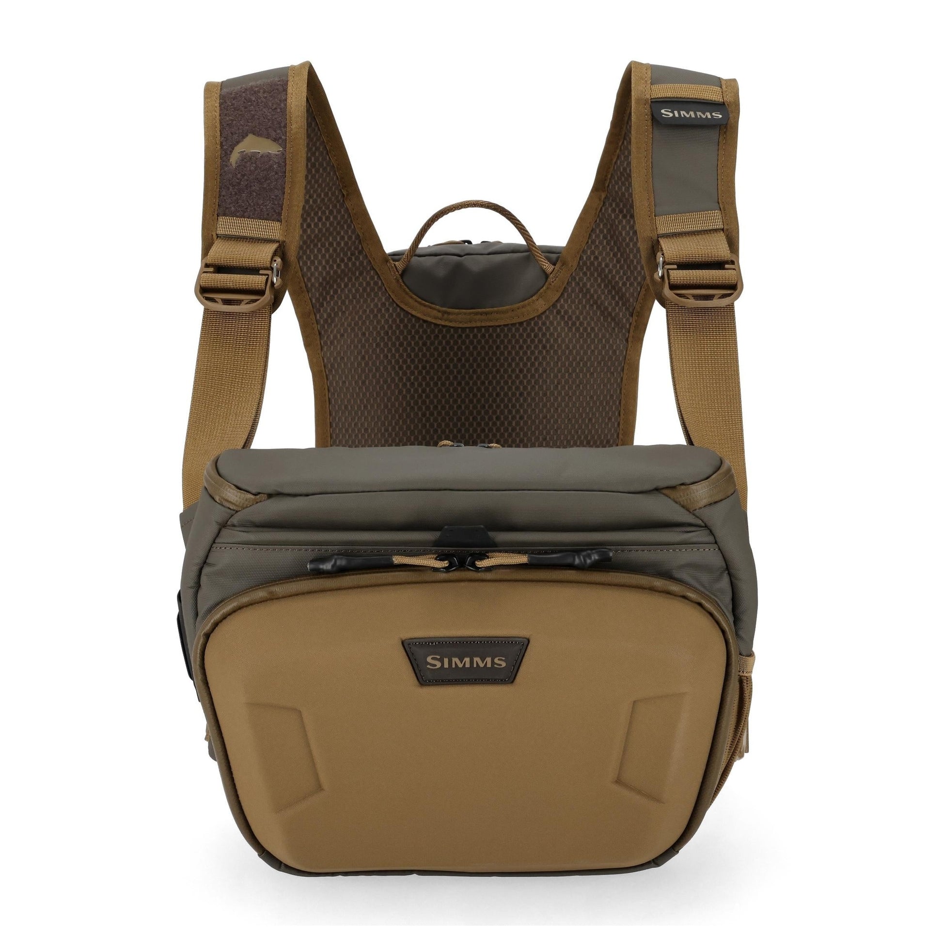 - Chest pack comes with a deployable webbing strap to wrap around the body and secure the pack when used with Simms waders or the Headwaters backpack