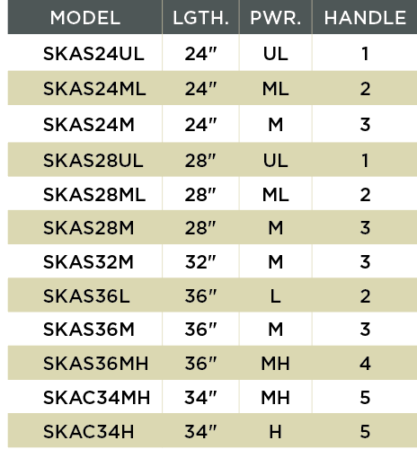 - SC Precision-taper solid carbon blanks provide exceptional performance.