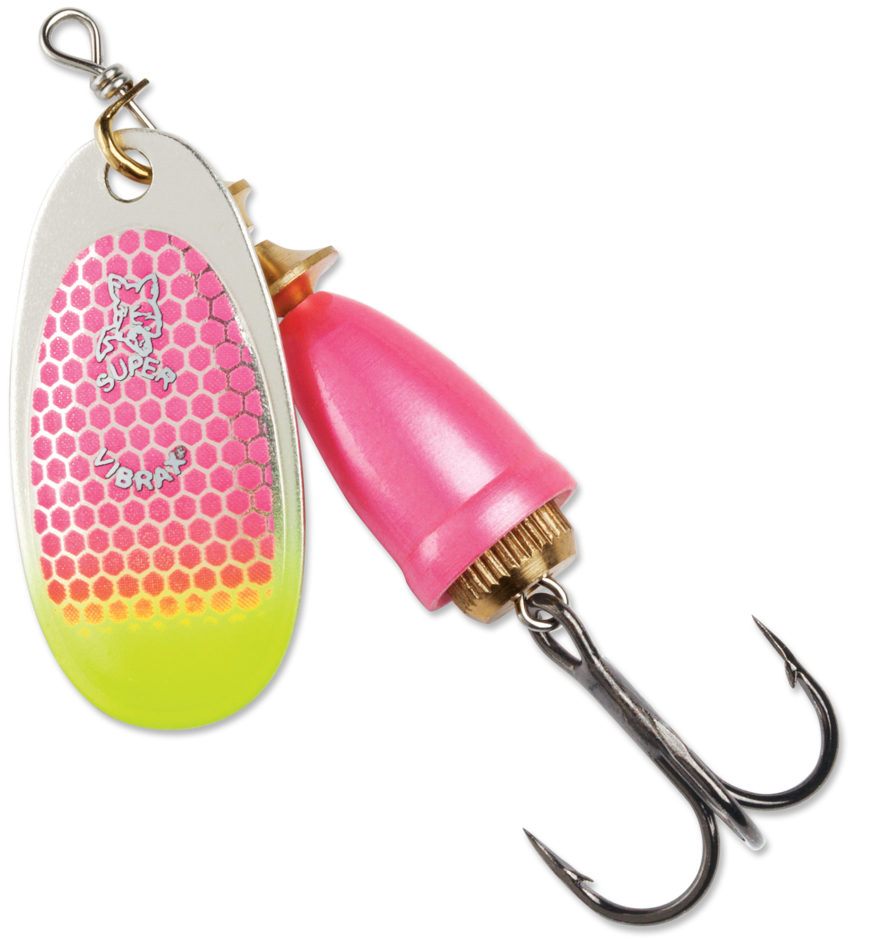 Runs 2 feet to 6 feet. The patented two-part body emits low-frequency sound vibrations that attract fish and trigger strikes while virtually eliminating line twist. The Classic Vibrax® gets a tasty candyback! Colored bell is accented with metallic flecks. Blade is tipped in matching color, while blade back is finished with transparent, fluorescent coordinating color. Flaw-free silver plating, fine tolerances and super-sharp hooks are long-standing features of this low frequency emitting patented two-part body spinner.