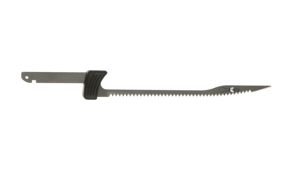 This 7" E-FLEX Blade fits both our 110V Electric Fillet Knife and Cordless Lithium Ion Electric Fillet Knife. It's made of a High Carbon Stainless Steel and chemically bonded with a ti-nitride coating to be extremely corrosion resistant. The 7" blade serrated edge and apposing bidirectional blades make filleting medium to large size fish effortlessly.