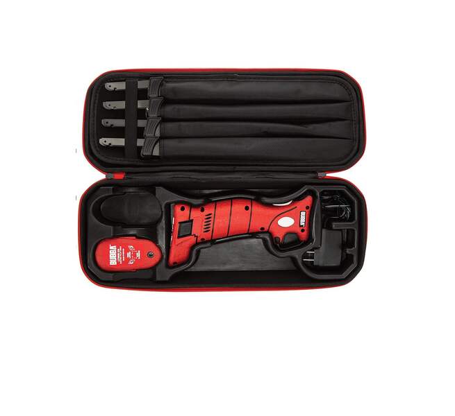 Included are four different blade styles — 7” E-FLEX, 9” E-FLEX, 9” E-STIFF, and 12” E-STIFF — that reflect the legendary tapered flex and stiff fillet knives. These blades are constructed out of high carbon stainless steel and coated with titanium nitride making them extremely corrosion resistant. They’ve also incorporated a safety lock and trigger guard for ultimate security. The electric fillet knife comes in a premium EVA molded carrying case, which allows you to break apart the storage units for easy cleaning. This knife contains a replacement battery, charging cord, and all batteries include a battery life indicator so you can rest assured that you'll never run out of juice. This electric fillet knife is exactly what you've been looking for, and it’s ready to fillet any fish any time.