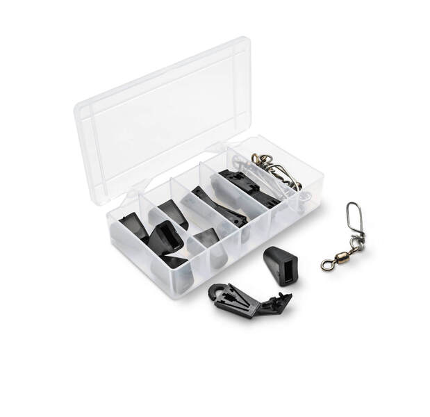 The Line Terminator Kit comes with all the components for up to six (6) complete line terminators inside a plastic tackle box. Built rugged to withstand loads of abuse, these line terminators are essential for attaching the downrigger cable to trolling weights. The line terminator kit includes six (6) durable plastic Cannon terminators, six (6) stainless steel snap swivels and six (6) cushion sleeve terminators.
