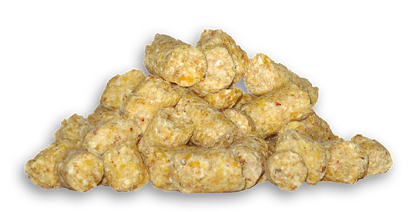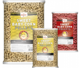 Baby corn pellets made of sweet corn (Zea mays var. saccharata), rich in starch. One of the best baits in warming waters.