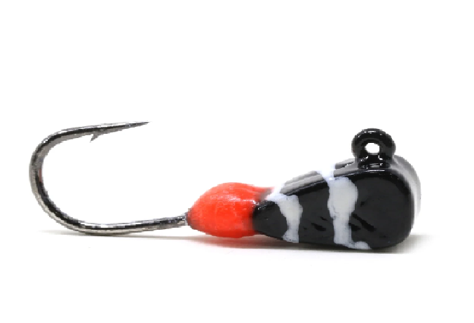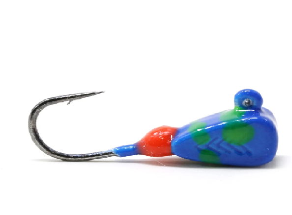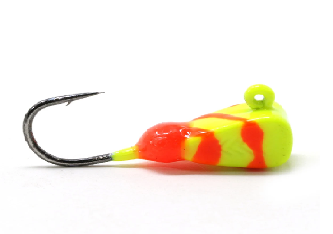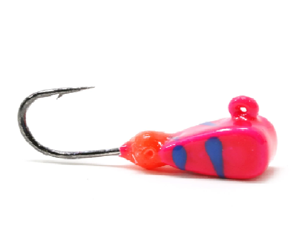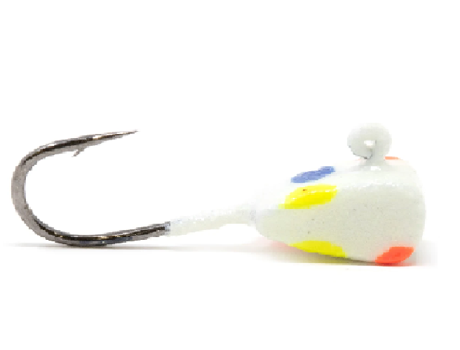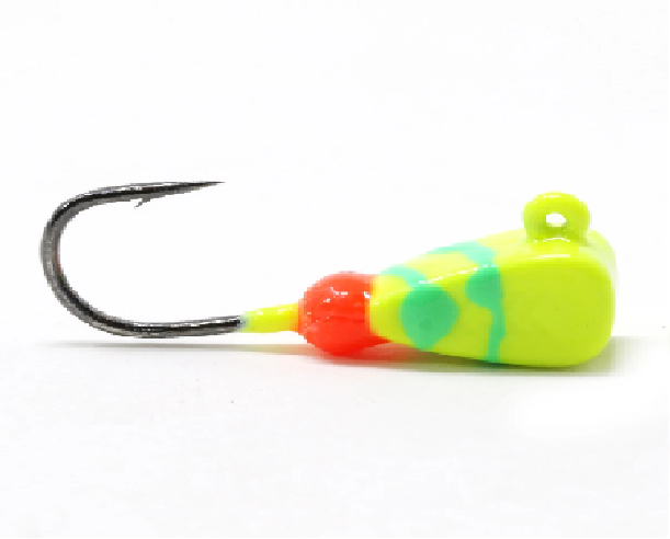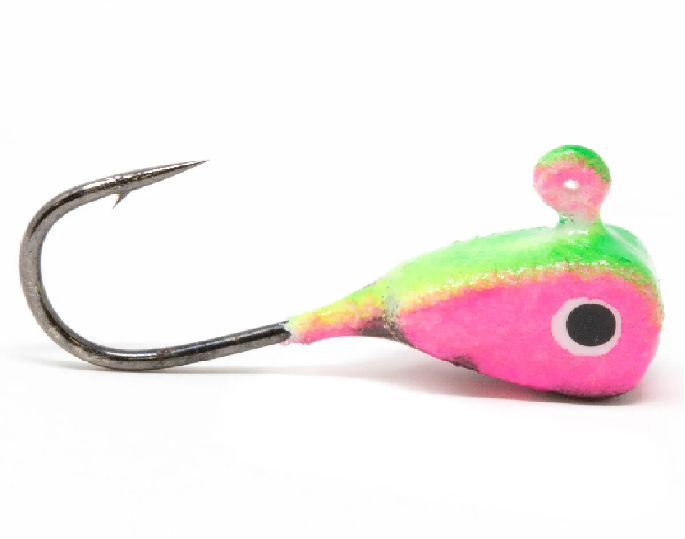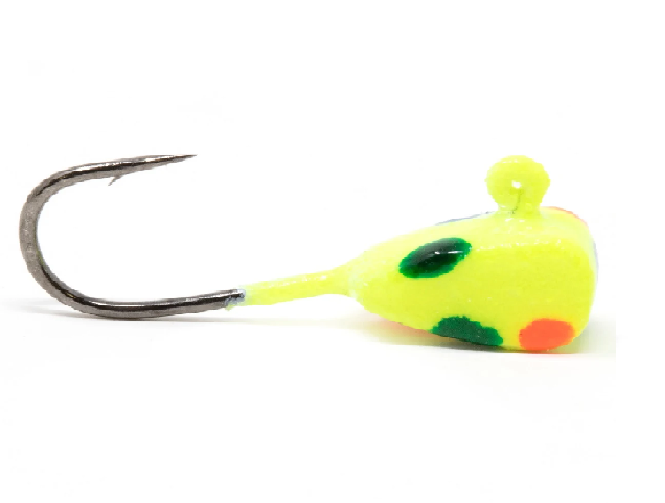 The Drop Kick Jig was designed for a better hook up, with it's 90 degree XL hook, larger tie eye, stronger wire and an increased hook gap, you are getting a better hook up percentage then other jigs. When worked correctly it creates a "KICK" that panfish won't be able the resist. The Drop Kick Jig also has a large flat surface on the top which will allow your sonar to pick it up easier. The Drop Kick Jig comes in various colors and has a UV coating. Drop KIck the next fish you get!