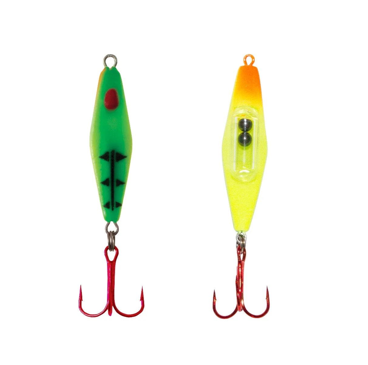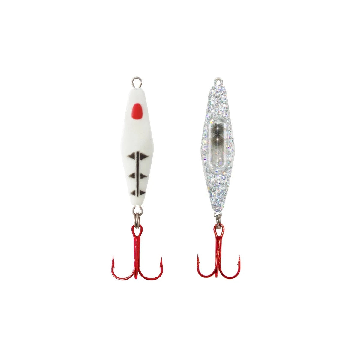 Don’t just hope a fish notices your presentation. Make them notice with the loudest lure you can drop through a hole. The same slicing, fluttering action of the original Blade Spoon with the upgrade of seriously loud rattles. The stainless steel bearings click and clack inside their pyrex-glass housing, calling in fish from distances you didn’t think were possible.