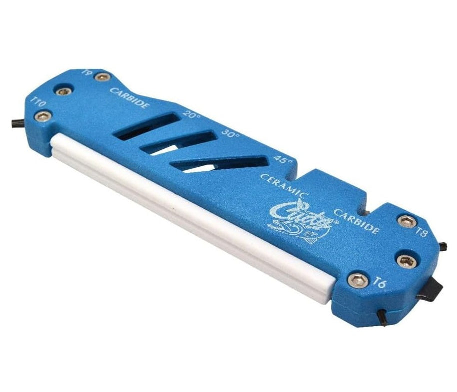 Cuda Knife, Shear and Hook Sharpener easily sharpens non-serrated knives, shears and fishing hooks.