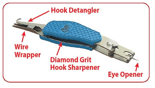 The Cuda Freshwater Line Clipper is not only a quick and easy line cutting solution to have in your tacklebox, but a multifunctional powerhouse to handle a wide range of tasks. Featuring an integrated line pick, wire wrapper, jig eye cleaner, and diamond grit hook sharpener in addition to the cutting jaws, there is more than meets the eye when it comes to the Freshwater Line Clipper. Everything is also titanium bonded and centered around the Cuda scale pattern handle, making the overall durability and grip-security exceptional. The patented titanium bonding process also provides incredible corrosion and adhesive resistance, while at the same time making the components 3x harder than untreated stainless steel. This way, the edges on all the components will endure through not only the roughest conditions, but through the ultimate test of time.