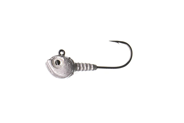 The Dirty Jigs Guppy Swimbait Jig Head is designed for fishing small swimbaits and the vertical jigging technique that dominated the 2017 B.A.S.S. Elite Series tournament held on Cherokee Lake. The Guppy Head is built around either a 1/0 or 3/0 extra sharp 90-degree line tie VMC hook. Its 90-degree jig head design allows for a perfectly horizontal lure position, making it the ideal jighead for vertical jigging, as well as, other small swimbait applications.