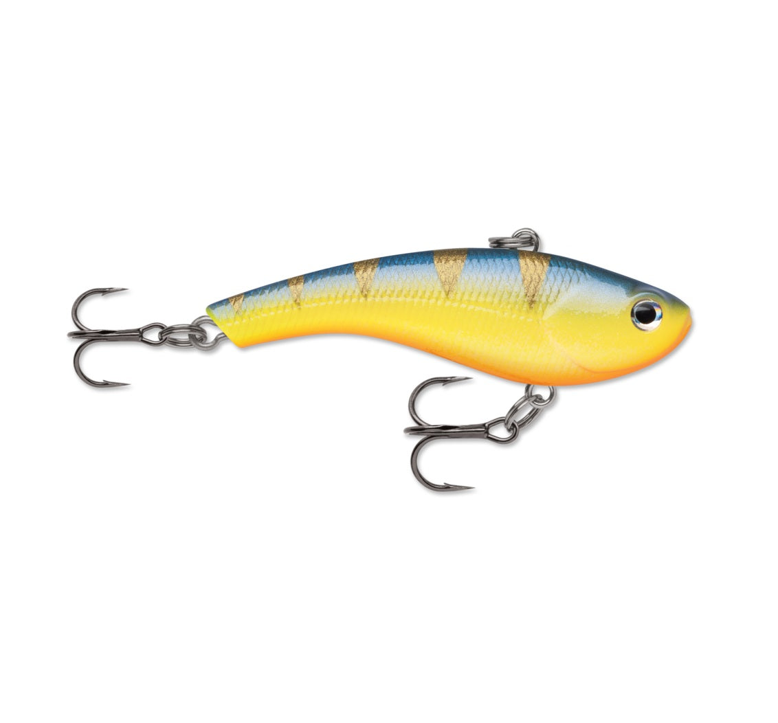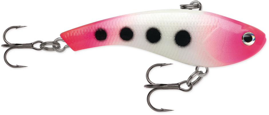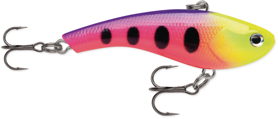 With quick rod snaps the Slab Rap® searches in wide, erratic directions, circling back to center after pause. Lift-drop motion creates subtle vibration on rise, followed by evasive side-to-side motion on the fall. Weight forward design enables a rocking action for triggering negative fish.