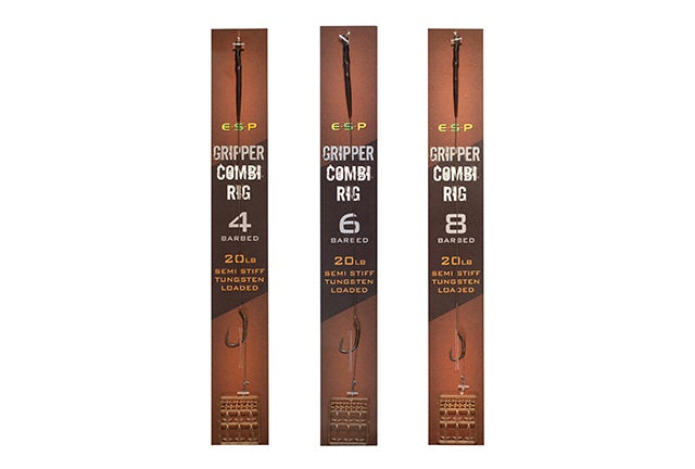 Tied to exacting standards in the ESP factory, these rigs comprise the super strong and sharp Cryogen Grippers to Tungsten Loaded semi stiff coated braid. Available in green and brown and in barbed and barbless sizes 4, 6 and 8.