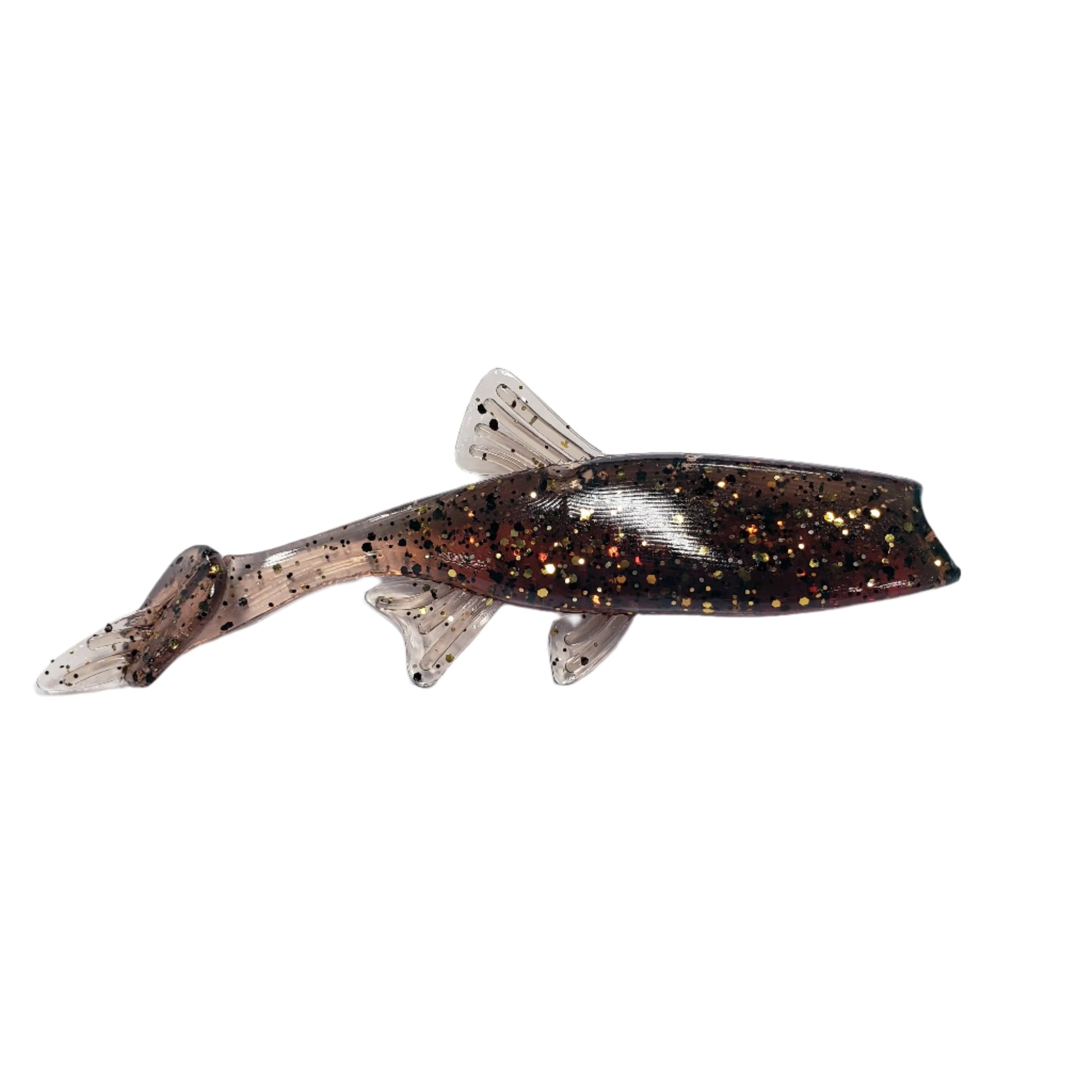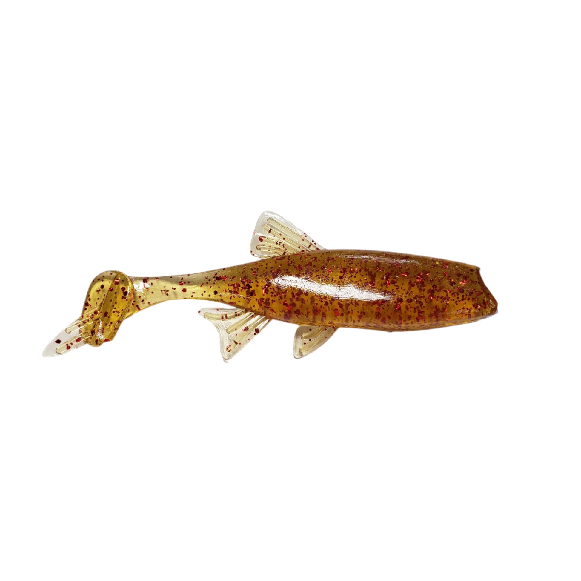 It was designed to be fished on a Walleye jig head as a swim bait, but it functions equally well on any moping jig head.