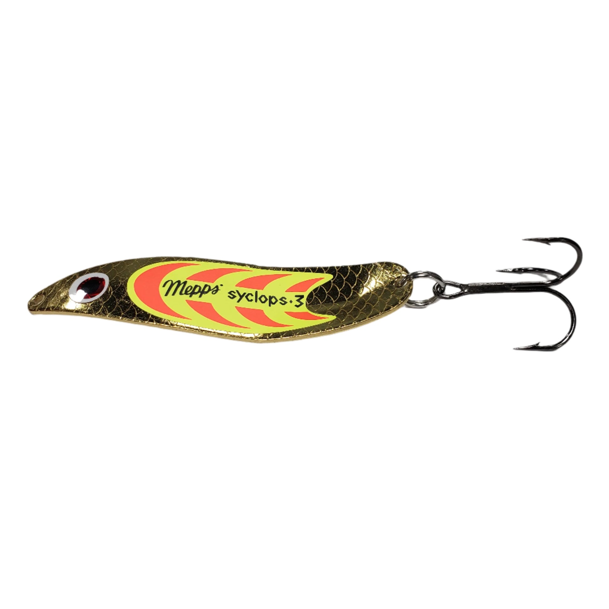 Spoon fishermen around the world are limiting out on the Mepps Syclops. Whether you fish for pike, salmon, trout, walleyes or panfish, there's a Syclops just right for you. Available in five sizes and a wide variety of proven colors, no other spoon is as versatile as the Mepps Syclops. It casts easily and can be trolled at almost any speed. It can also be vertically jigged making it ideal for ice fishing or deep-water vertical jigging.