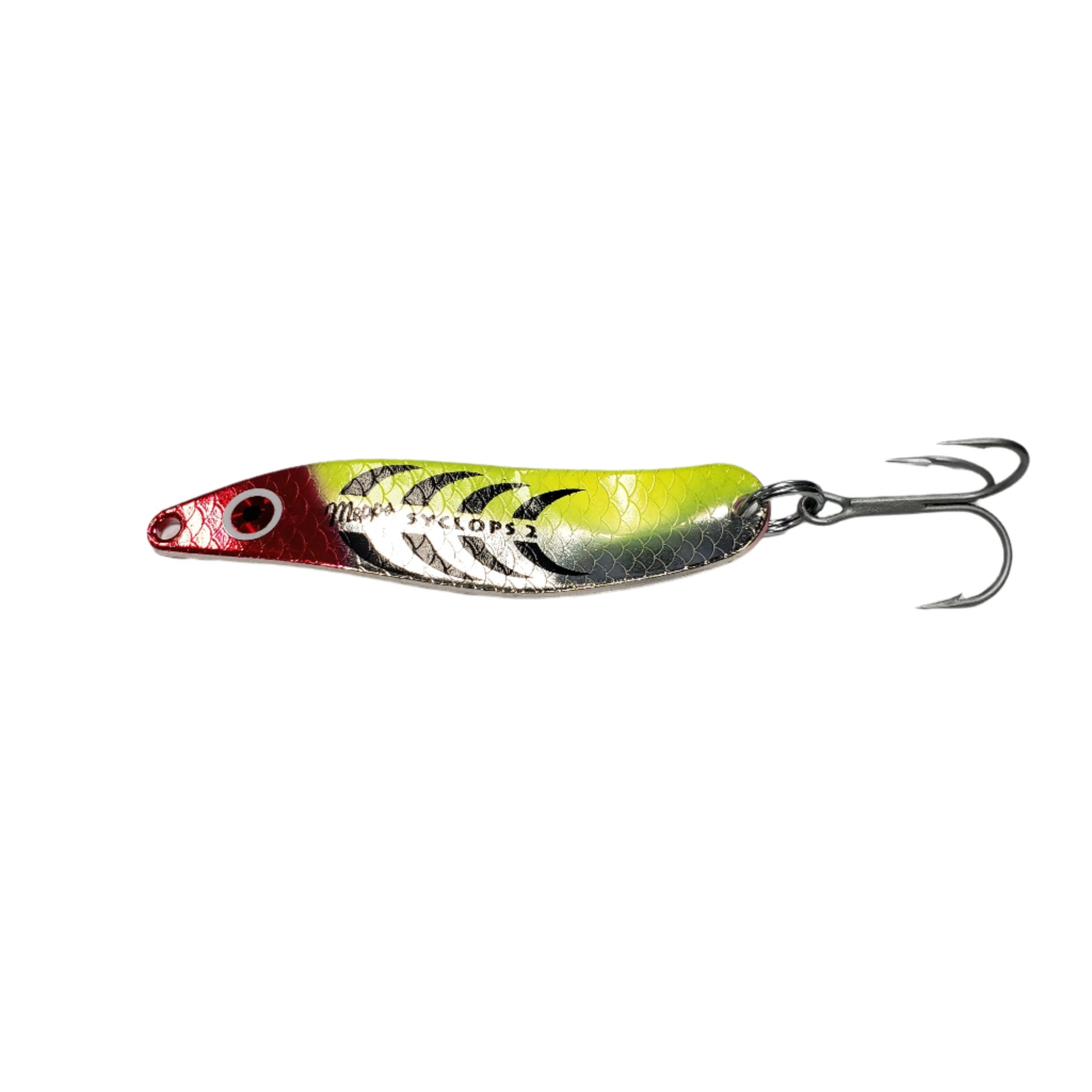 The legendary Syclops spoon with its outstanding side-to-side wobble has been joined by the new Saltwater Syclops. Built to hold up to the most brutal saltwater conditions and fish, the Saltwater Syclops components are all corrosion resistant: nickel or gold-plated blade finishes, brass bodies, stainless steel split rings and perma steel treble hooks.