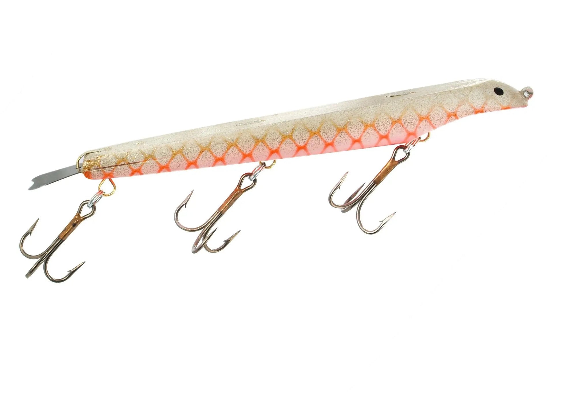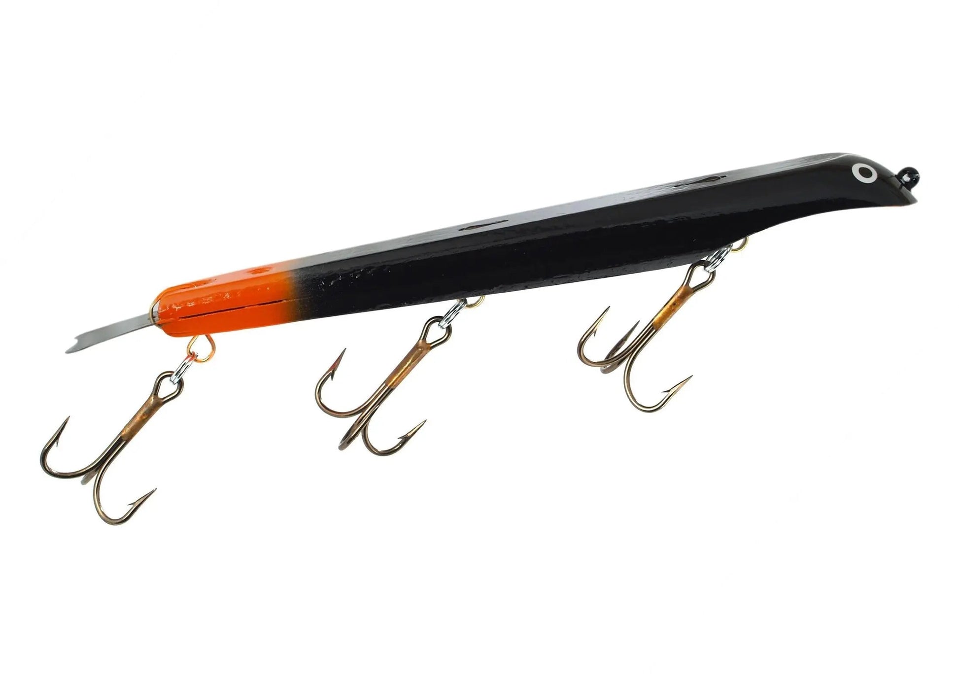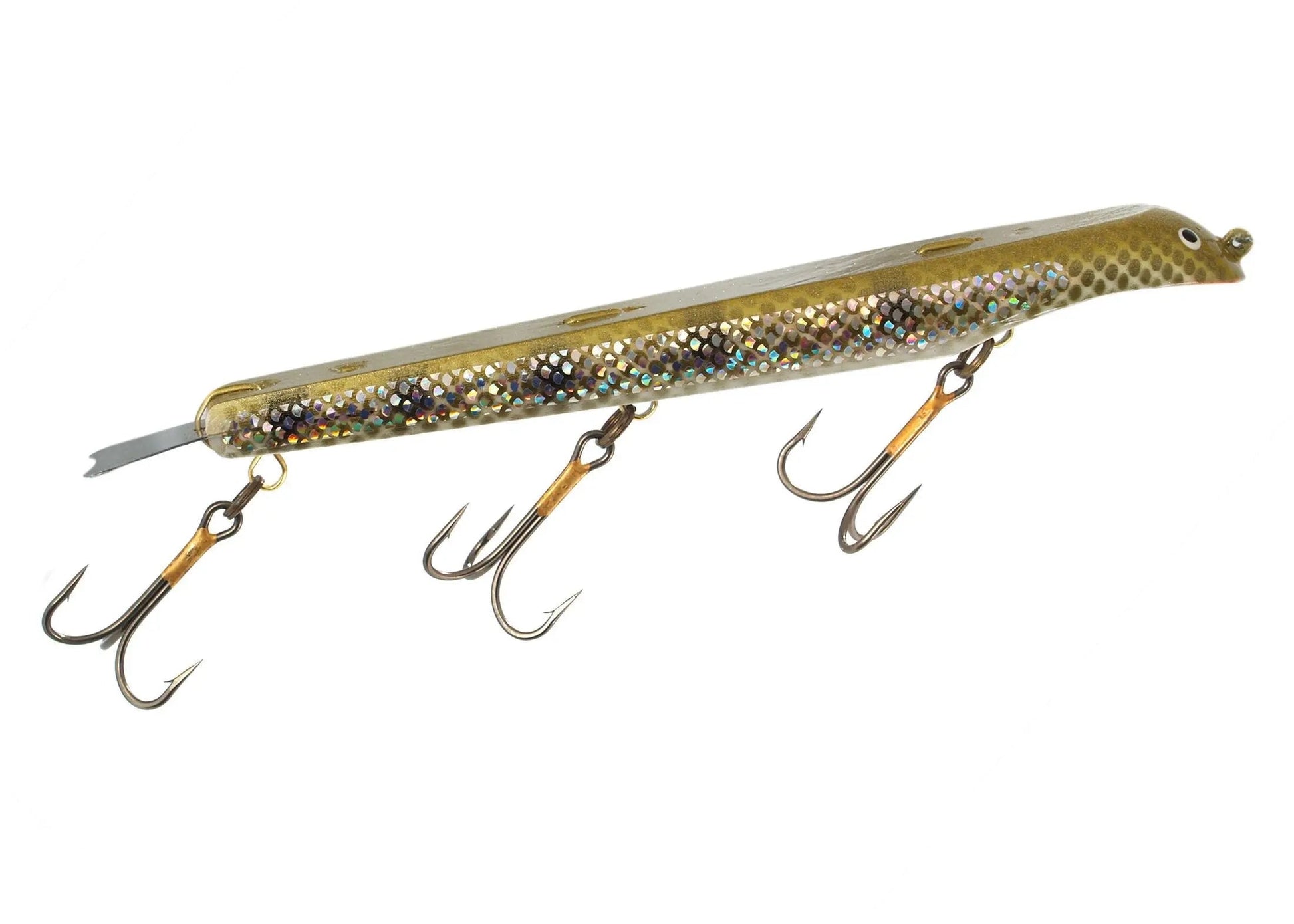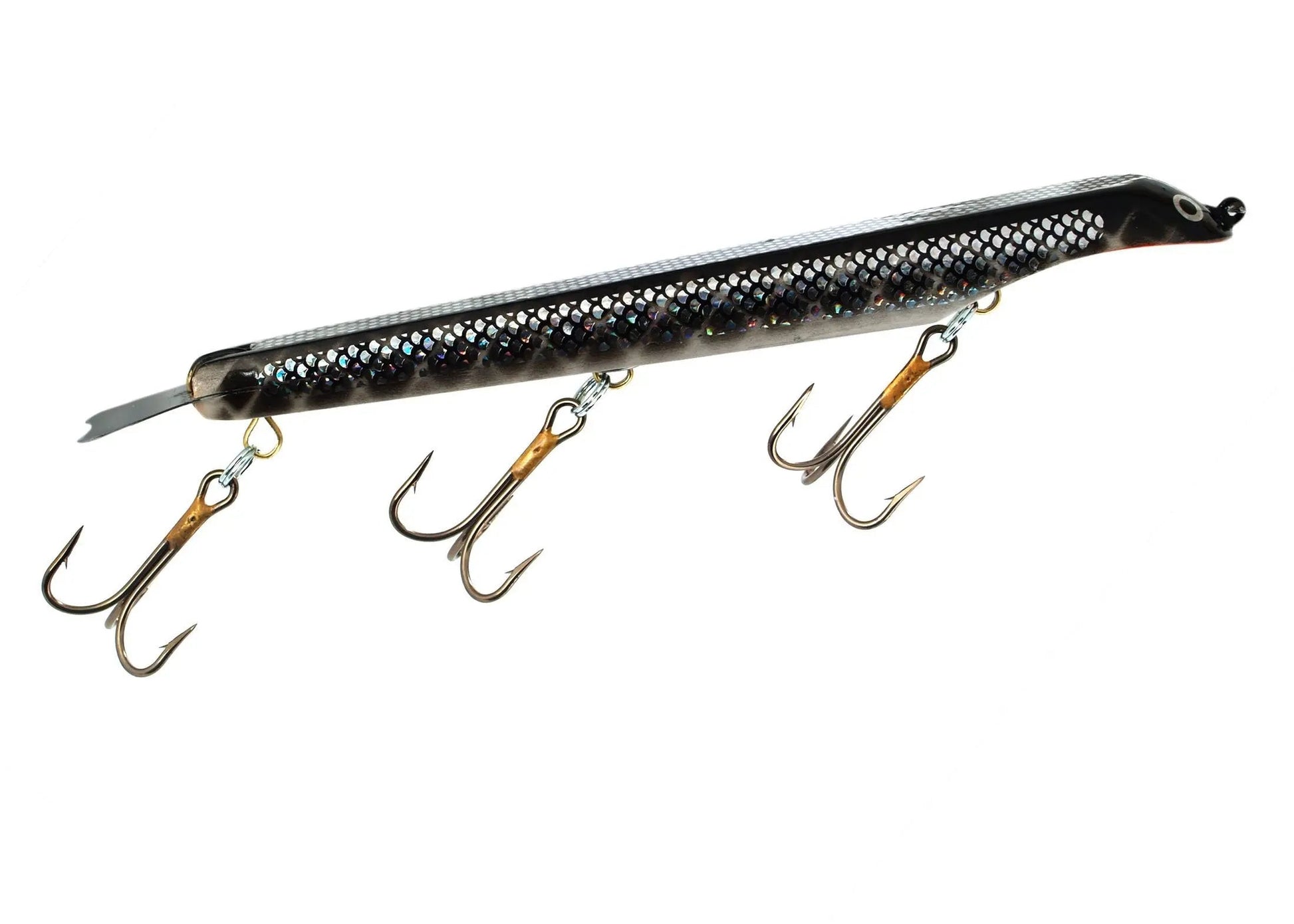 The Suick 10" Super Sized Non-Weighted Thriller is designed for anglers seeking exceptional action in a large-profile lure. Crafted from wood and equipped with three durable 5/0 treble hooks, this 10-inch lure weighs 2 1/4 ounces to deliver a commanding presence in the water. Its non-weighted design ensures a natural, enticing movement that triggers strikes from serious game fish. Perfect for targeting bigger species, this Thriller combines size and performance for expert anglers demanding effective, reliable gear.