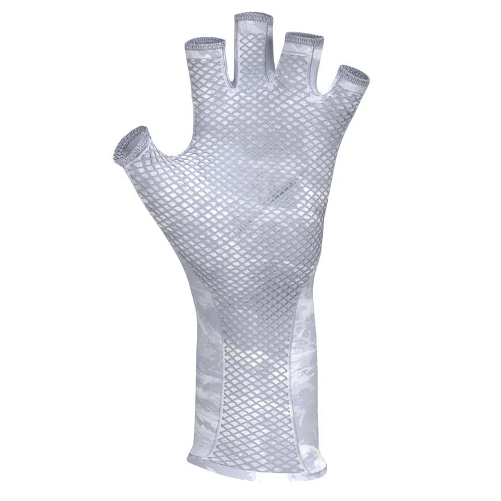 Huk Pursuit Sun Gloves, featuring the Mossy Oak Stormwater pattern, provide the protection you need for those long days on the water.
