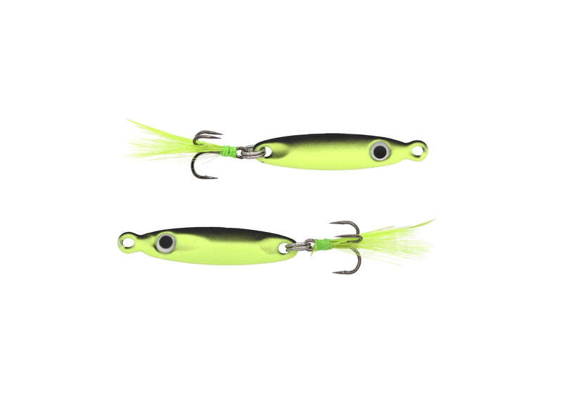 The Eurotackle T-Flasher tungsten jigging spoon is the one bait we all need! This game changer hard bait features a 99% Tungsten body, a custom Eurotackle treble hook with hand tied feathers, with high quality Glow and UV colors available. Targeting Panfish, Walleye, Trout, Perch, Bass, Bluegill and Crappie with ice fishing spoon can be super effective. The T-Flasher is a fast sinking spoon due to its Tungsten composition, which is a key factor when it comes to any type of fishing including ice fishing. The way this bait is fished can vary from ripping deep for walleye or slowly jiggled for perch and bass. When it comes to having the high quality fishing gear the Eurotackle T-Flasher Tungsten spoon is must!