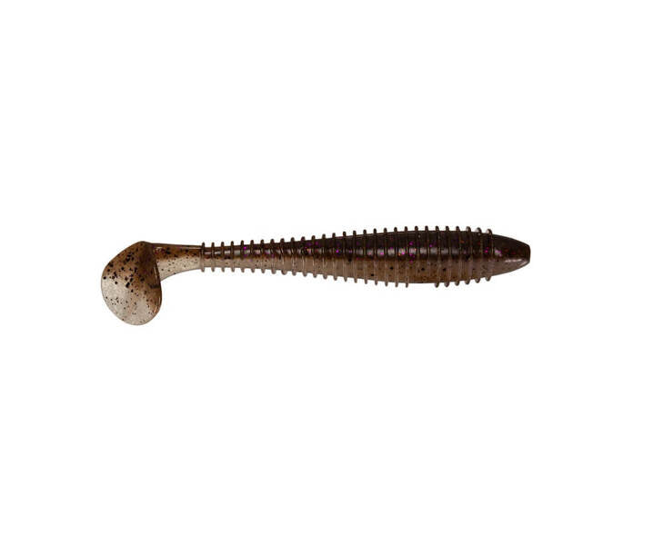 The Keitech FAT Swing Impact redefines swimbait performance.  Keitech's revolutionary two-tone injection process uses several different types of salted plastics to achieve perfect balance & action. The most impressive feature of these great swim baits is the ability to maintain a perfect swimming motion at any retrieve speed. The tapered design ringed body distorts the shape to a more natural appearance. The center rigging line provides the perfect position to ensure the bait is rigged correctly. The Fat Swing Impacts are packaged in blister packs to help protect the integrity of the baits.
