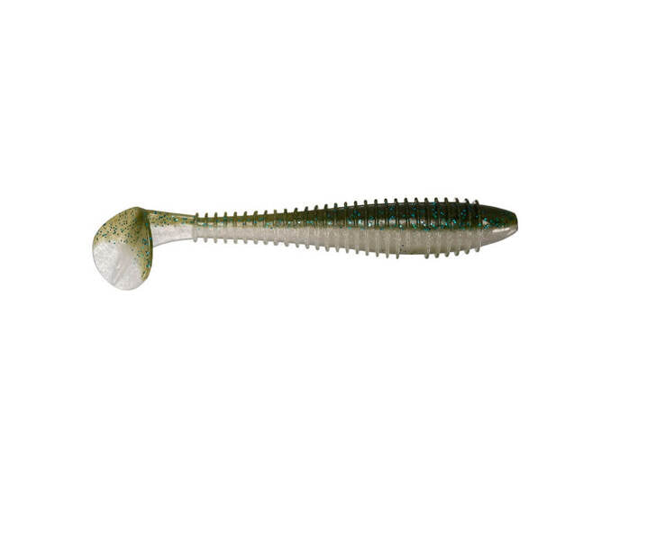 The Keitech FAT Swing Impact redefines swimbait performance.  Keitech's revolutionary two-tone injection process uses several different types of salted plastics to achieve perfect balance & action. The most impressive feature of these great swim baits is the ability to maintain a perfect swimming motion at any retrieve speed. The tapered design ringed body distorts the shape to a more natural appearance. The center rigging line provides the perfect position to ensure the bait is rigged correctly. The Fat Swing Impacts are packaged in blister packs to help protect the integrity of the baits.