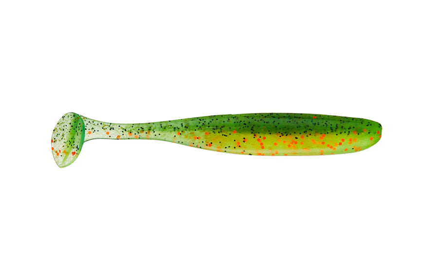 The 4" Easy Shiner has a wide-wobbling rolling action that drives predator fish wild! The finely cut tails cause the bait to swim perfectly at even the slowest speeds. The Easy Shiner has become a staple in the Tournament Angler's arsenal thanks to our Legendary Keitech Swimming motion