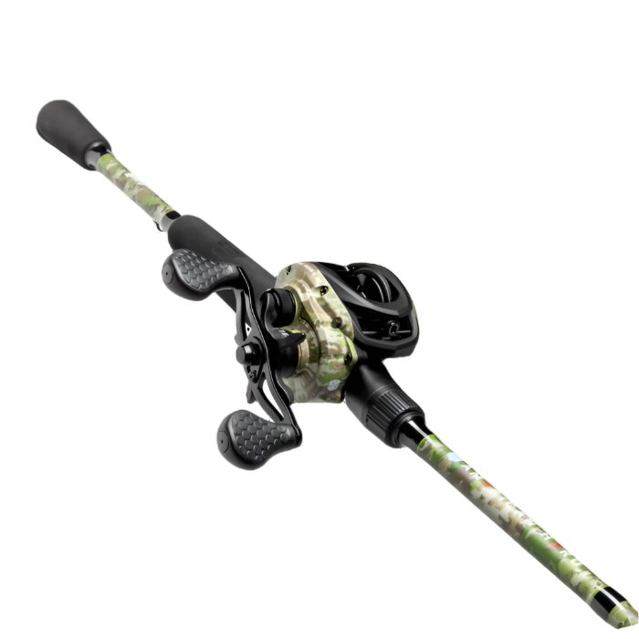 Paired perfectly, the rod features the same "HeroCam" camo pattern on the split and throat of the graphite blank, creating a cohesive and stylish look. The premium IM7, 1-piece graphite blank of the rod boasts split grip EVA handles with an embossed American Hero logo. Stainless steel guides with inserts ensure long-lasting durability, while the Lew's exclusive skeletal reel seat completes the package, providing a unique and exceptional angling experience.