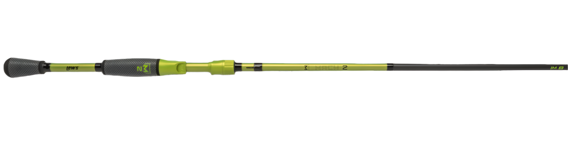 Elevate your line up with the MACH 2 rods, providing strength and durability every time you hit the water. The premium IM8 graphite blank strikes the perfect balance of backbone and sensitivity to put the angler in complete control. This rod features sturdy, stainless-steel guides with aluminum oxide inserts, Lew's exclusive graphite skeletal reel seat, a Winn® Dri-Tac Ultra split grip handle for heightened control, and a patented "No Foul" hook keeper, making this a quick favorite among MACH Nation anglers.