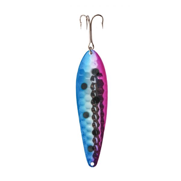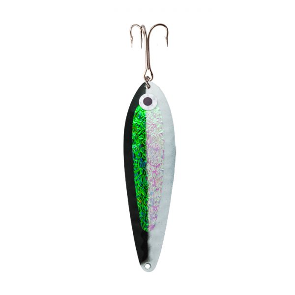 Premium brass body is nickel or gold plated for superior durability and shine. Their design boasts a high fluttering action when used. Paint finishes are very robust with many reflective and glow in the dark patterns on various models. Equipped with premium 2X strong Eagle Claw hooks with sea guard finish. RAC Spoons are proudly stamped, plated and hand painted in-house with the highest quality materials and attention to detail.