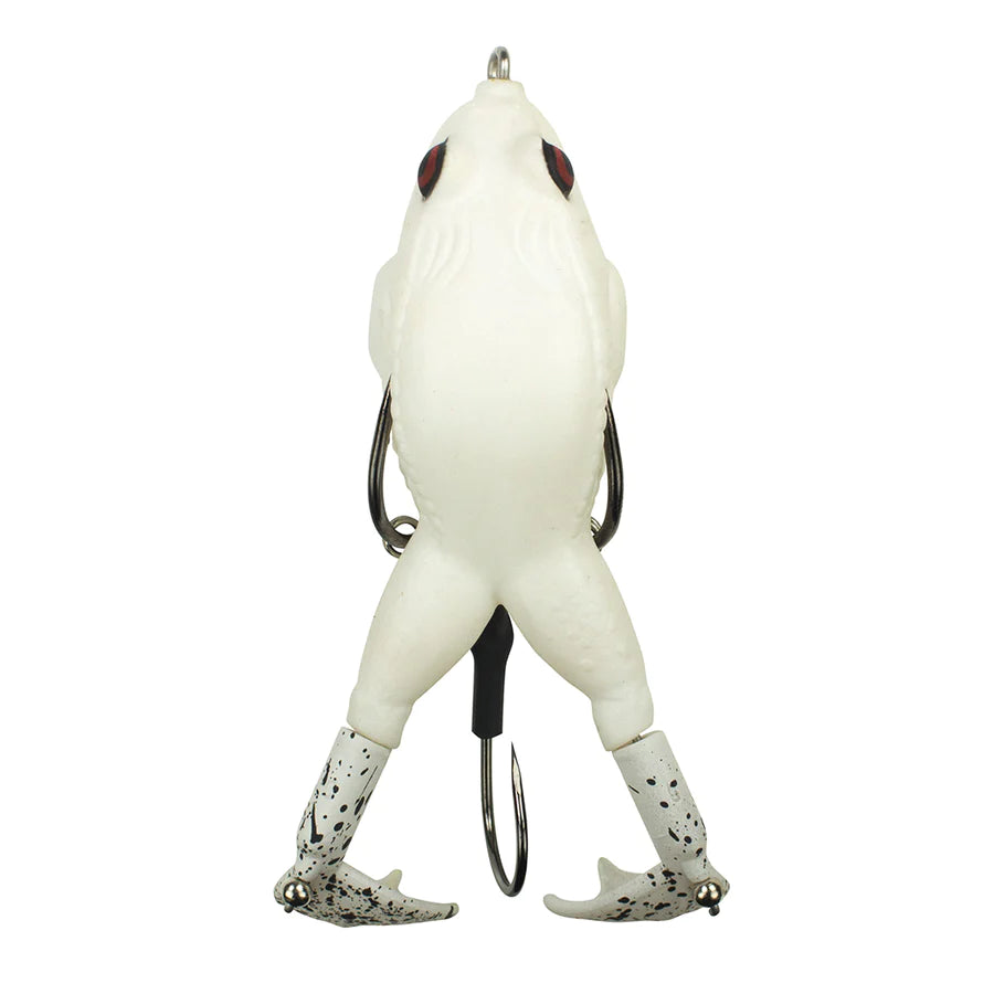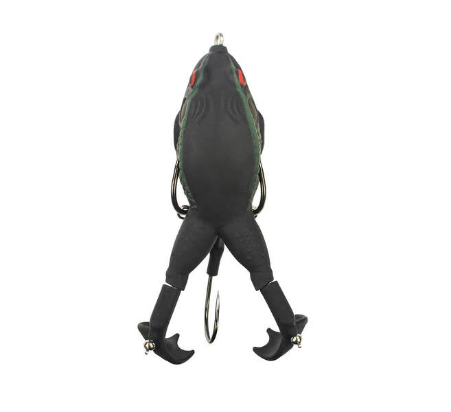 The Lunkerhunt Prop Frog's double prop feet make a lot of noise and disturbance on the water surface, which make it an easy target to track down. Active and reactive fish cannot resist its call. When they hit, a full set of weedless hooks is ready to greet them. The hook system on the Lunkerhunt Prop Frog has been designed to deflect from cover, but hang on to fish. It has an integrated hook system that encases the body and sits perfectly between the prop feet. This results in optimum performance and high hook up ratios.