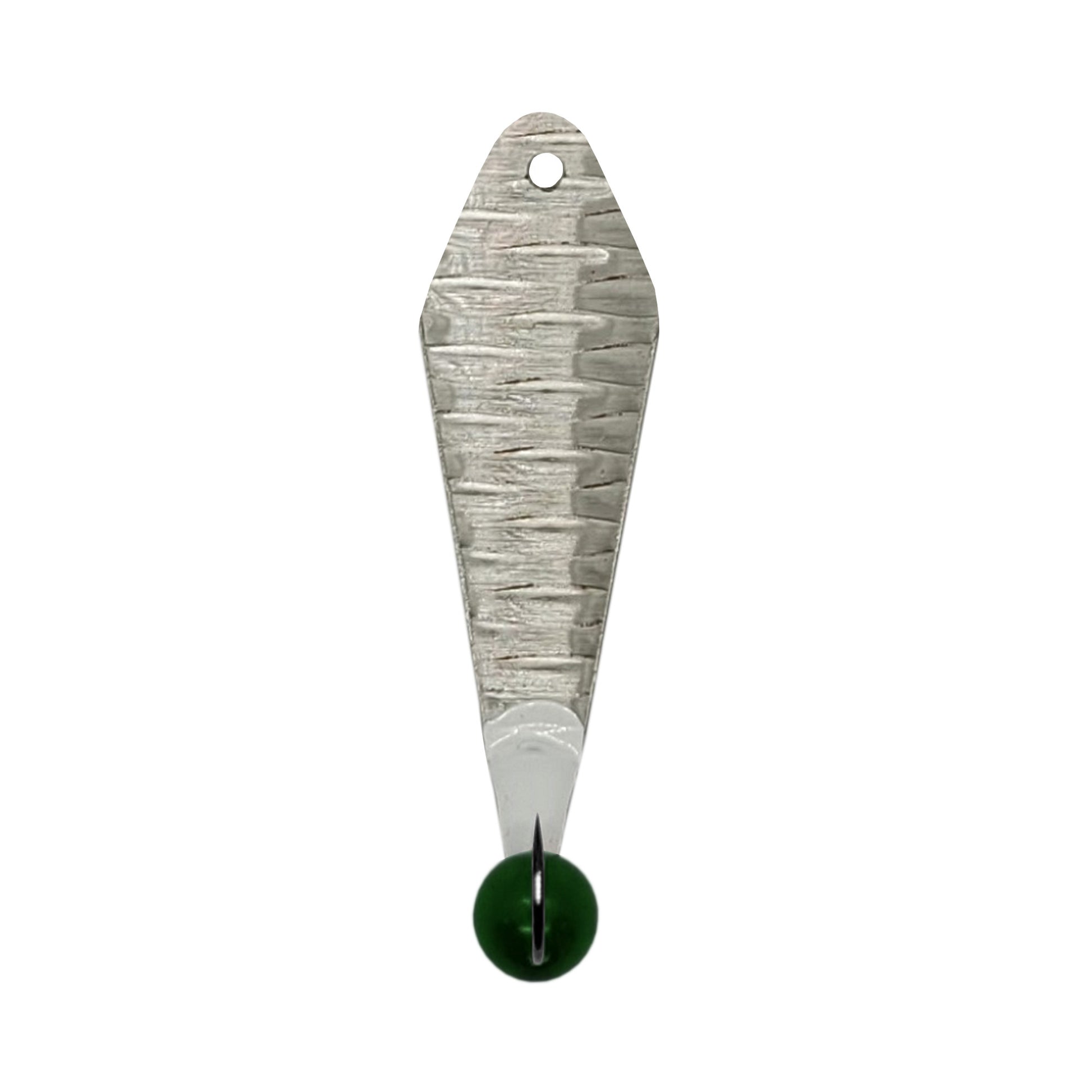 Larger fish prefer our 2-inch jigs with an 8mm bead. Don't let the larger jigs scare you away-all pan fish will hit on the bigger spoons as well. The extra stainless steel or brass gives you more flash and action to bring in the school!
