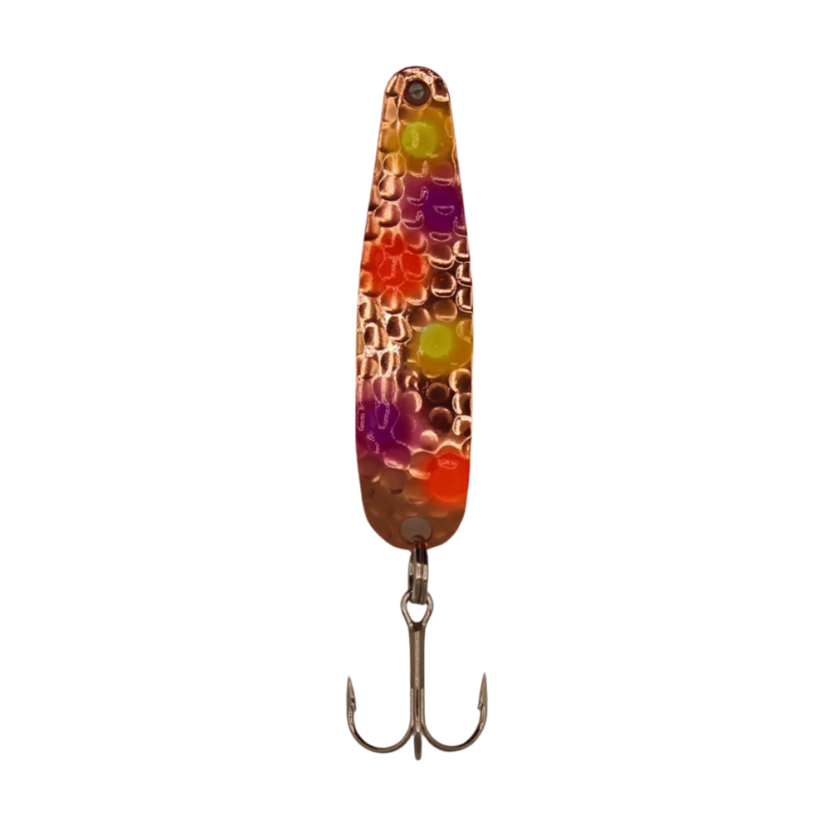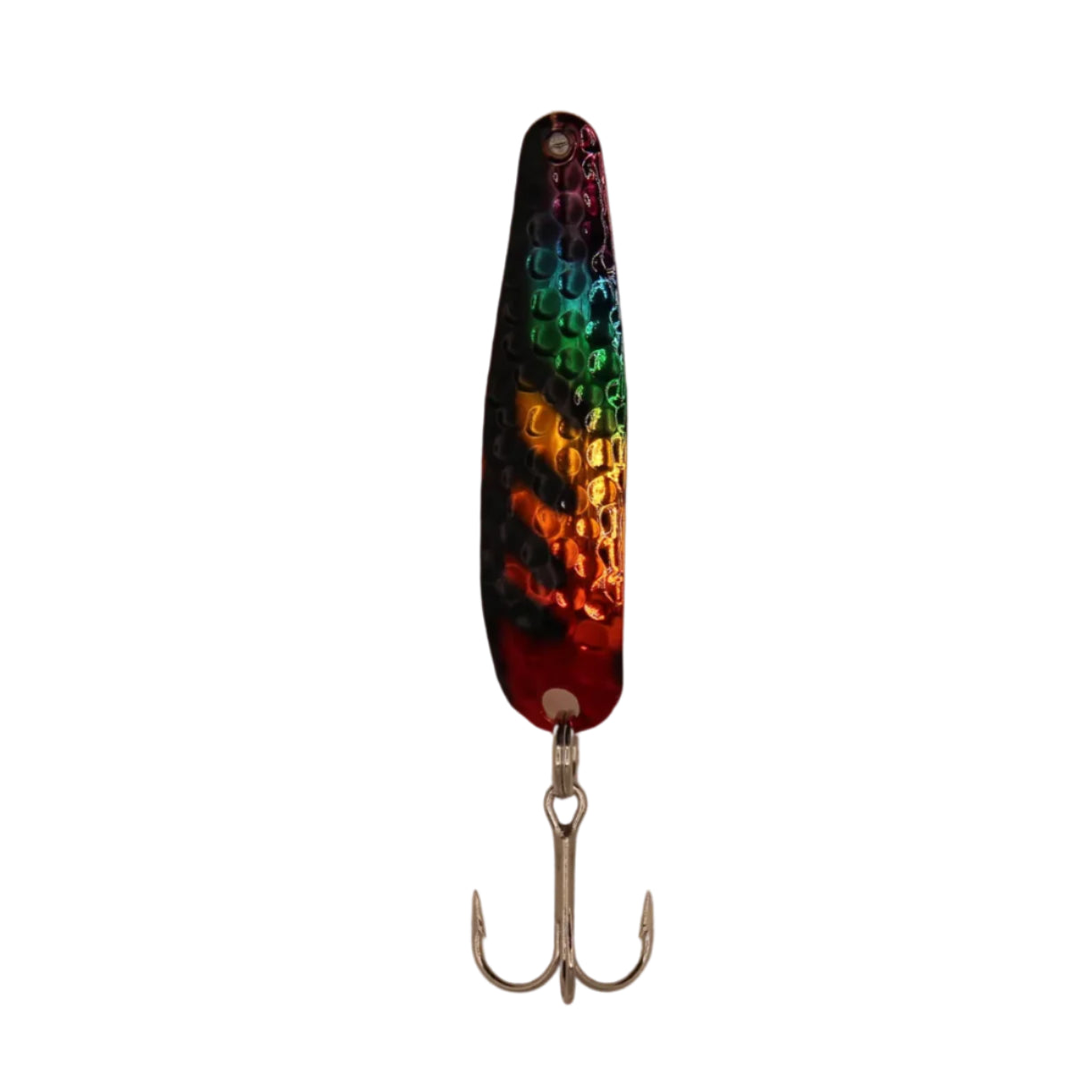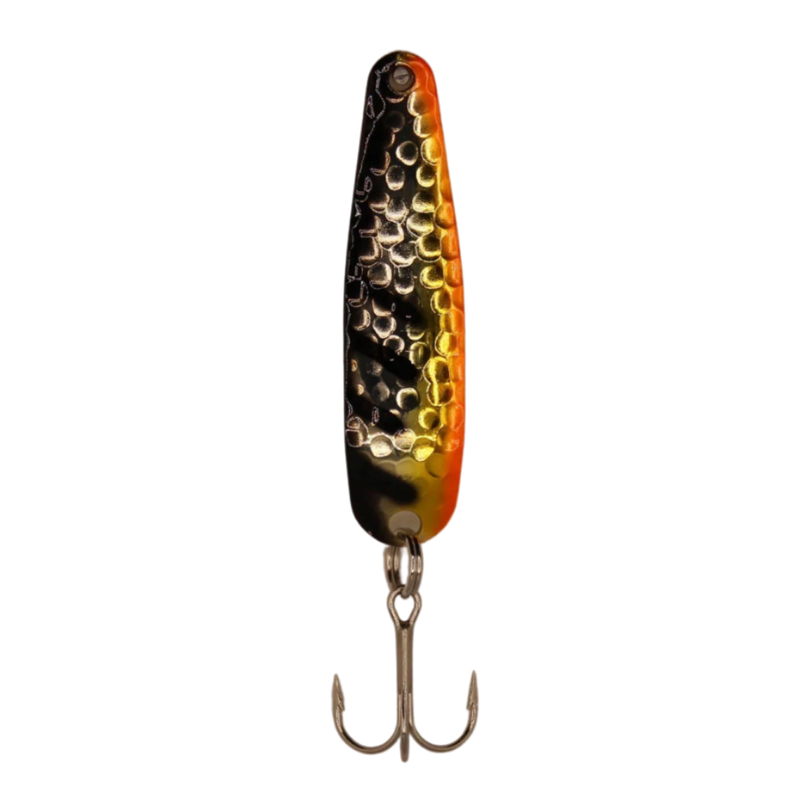 The Scorpion Spoon is productive anywhere small baitfish are present. The Scorpion is built with high-quality materials and sports a brilliant high-flash finish, while its curved profile creates a fluttering wobble action that triggers almost all game fish species to strike. Stinger's Scorpion Spoon is a Great Lakes standard for walleye and steelhead, but also effective for trolling, casting and vertical jigging for a wide variety of species.