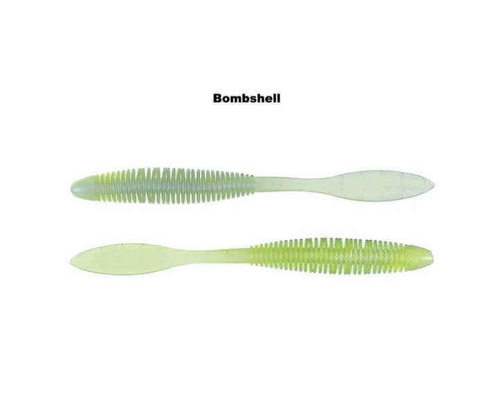 The Bomb Shot by Missile bait is one of the most deadly and effective drop shot worms on the market today. Building off the highly successful Missile Baits D Bomb, the Missile Baits Bomb Shot Worm bait is designed with a fully ribbed body and a super thin paddle tail that provides incredible action even with the slightest movement from the rod tip. Once in the water, the Missile Baits Bomb Shot Worm will start and continue to shimmy or quiver without stopping.