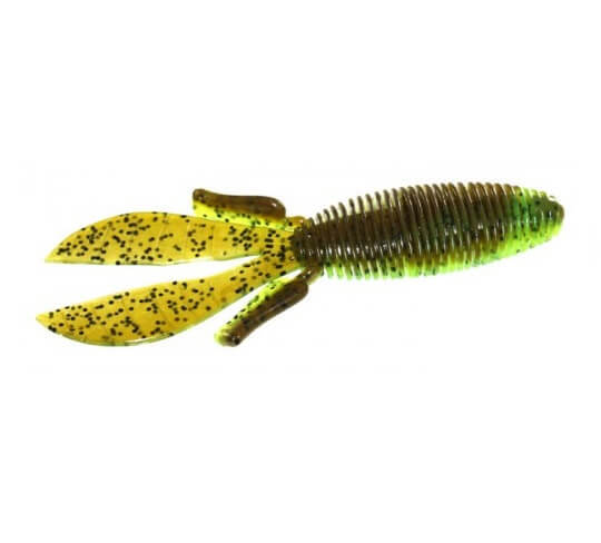 Pitching and flipping has a new go-to softbait. Missile Baits new D Bomb softbaits is a bulky creature bait with a unique ribbed body that displaces lots of water resulting in a straight fall. The tails sail when left connected or flap wildly when separated. The body of Missile Baits D Bomb softbaits is thinner where the hook comes out for easy hook sets but has a thicker head so the bait stays on the hook.