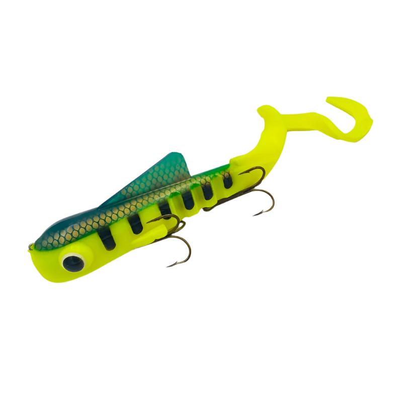 Straight cranks, jerked, twitched or even trolled, the Magnum Bull Dawg by Musky Innovations is able to be used in many different styles and approach which makes this soft plastic an easy to use bait for any angler. The biggest strength of the Magnum Bull Dawg is the way it moves water through it's actions and the way it feels to the fish.