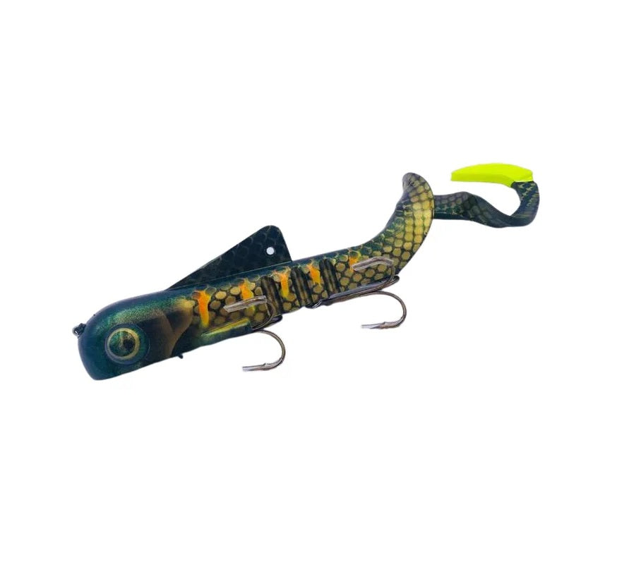 Straight cranks, jerked, twitched or even trolled, the Magnum Bull Dawg by Musky Innovations is able to be used in many different styles and approach which makes this soft plastic an easy to use bait for any angler. The biggest strength of the Magnum Bull Dawg is the way it moves water through it's actions and the way it feels to the fish.