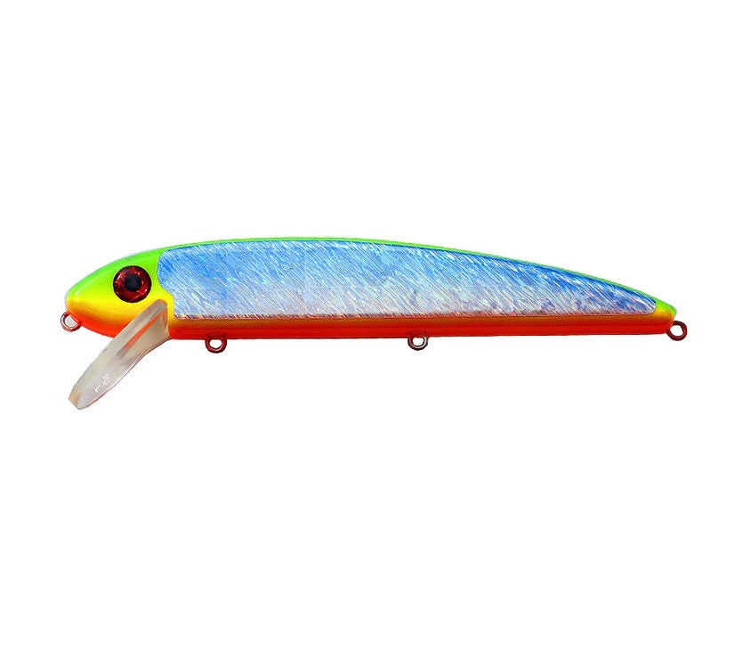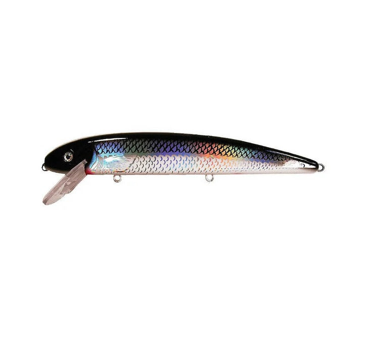 It’s narrow, flat-sided body combined with a unique lip design work together to generate tremendous wobble and flash, even at high speeds. Predatory fish see a forage bait fish struggling for survival as it attempts to swim upright. The “high-impact” lip is designed to hammer the structure, trees or rocks, driving the large trophy-class fish to take action. Available in 6, 8, 10 and 14 inch versions, it is equally effective, cast, trolled or twitched. Simply put, its a killer lure!