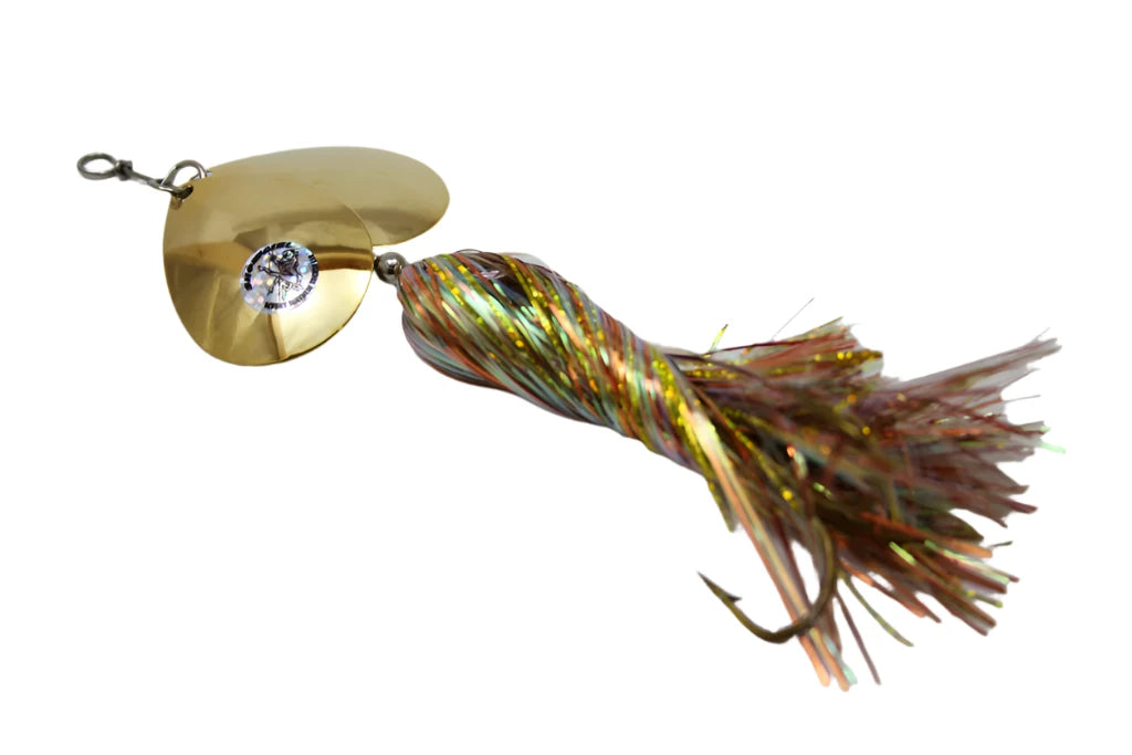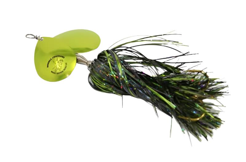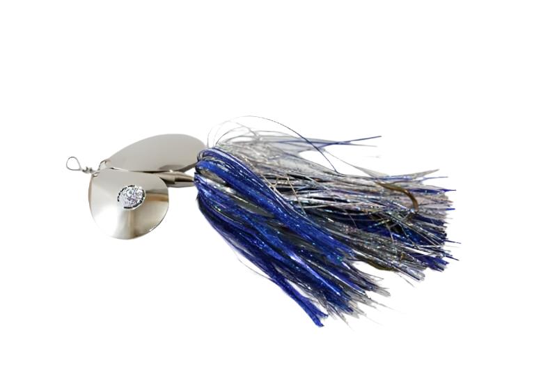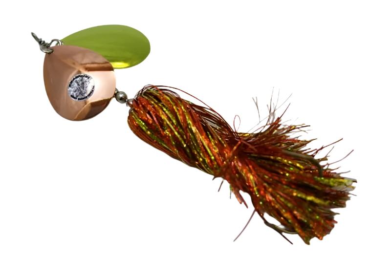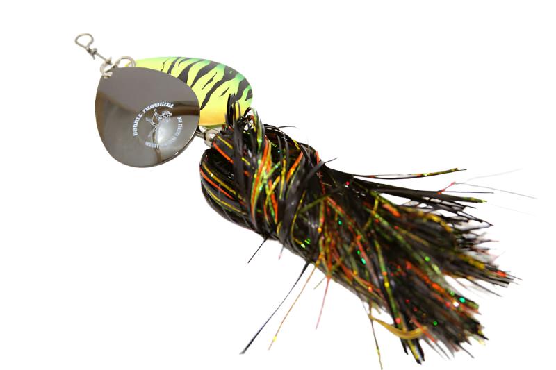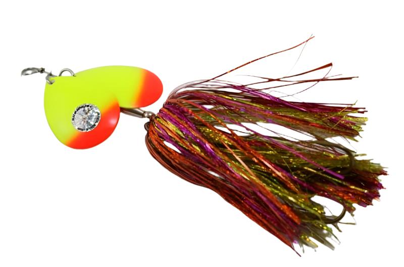 Just like the original Showgirl, but better. The Double Showgirl by Musky Mayhem Tackle features more durability, underwater vibration and light gathering skirts that is equipped with two #7 Colorado blades.