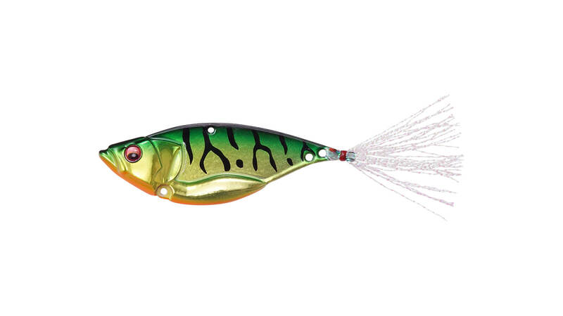 The DYNA RESPONSE is a new concept metal vibe developed with Shinji Sato. The super-thin 0.6mm stainless plate cuts through water and features a carefully sculpted weight shape that generates powerful vibrations and quick start-up action. The weight’s hydrodynamic design powers a sharp, high pitch action and kicks into gear instantaneously whether employing lift & fall or more traditional retrieves. The placement of the rear treble and innovative tinsel-tail detail significantly reduce line tangle on slack line and at the end of long casts, in addition to providing an enticingly new flicker-flash to the DYNA RESPONSE’s vibrating action. With its outsized flash, high-pitch vibration, tangle-fighting tinsel and lightning-quick startup action, the DYNA RESPONSE elevates the traditional metal vibe to new heights.