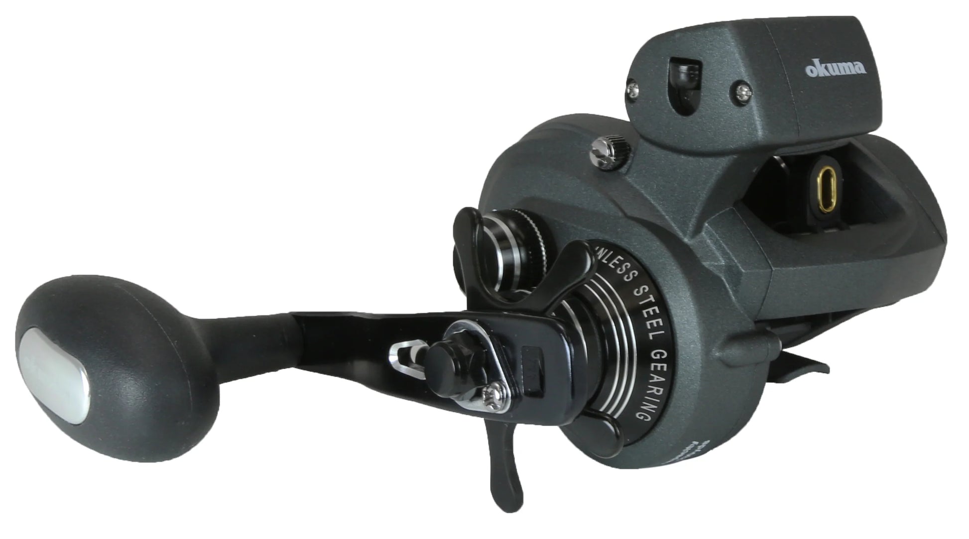 It’s quite possibly the most significant salmon, walleye and catfish fishing reel ever introduced while adding exceptional function to musky and striper anglers as well. The Cold Water 350 and 450 Low-Profile Line Counter brings together three core features to create the ultimate reel. First is a compact ergonomic body that fits the hand with exceptional comfort while housing a high-capacity 350 or 450 size spool. The second is a powerful drag system with 25-pounds of max drag on the 350 and 30-pounds of max drag on the 450 size. And third is a precision line-counter for exact trolling presentations.