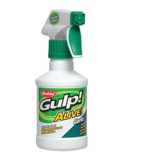 Gulp! Alive! Attractants are available in many popular prey scents and flavors. Simply spray any bait to make it taste and smell like live bait. Easily apply trigger spray bottle shoots stream or spray to make any bait taste and smell with popular prey scents and flavours. Works great with soft baits, hard baits, or live baits!