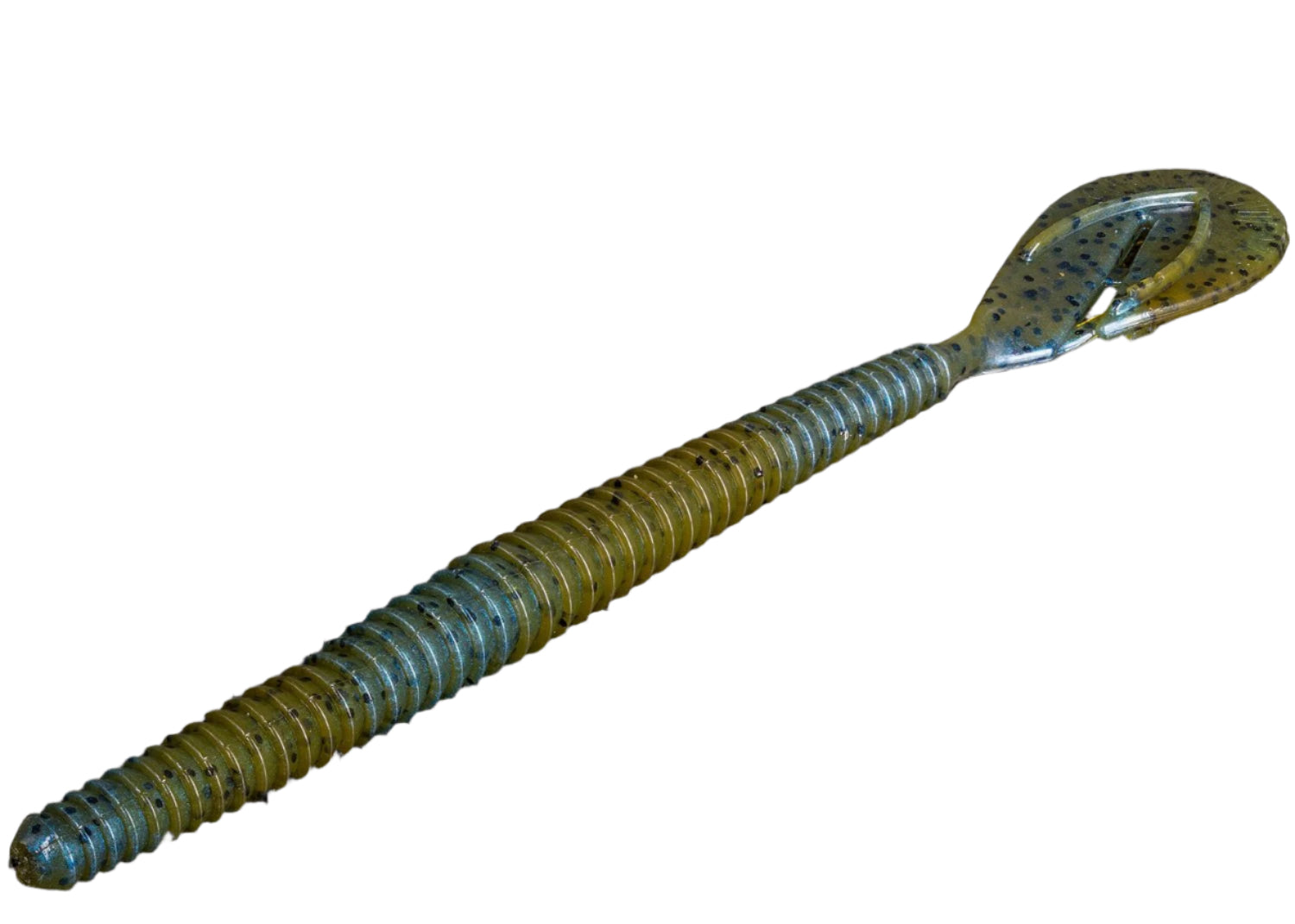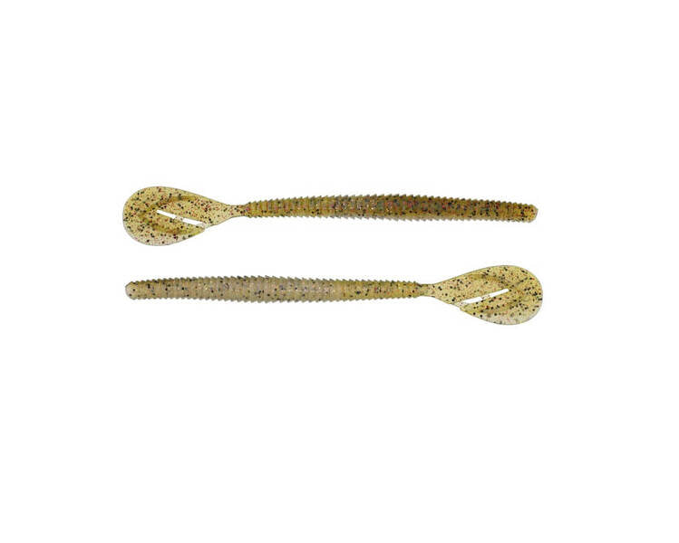 The Machete by Reaction Innovations is a swimming worm softbait that throbs like a spinner bait when going through the water. Reaction Innovations has designed the Machete worm bait with a vertical rib on the tail that allows the softbait to grab more water and to also keeps the tail from tearing off. Reaction Innovations designed the tail of the Machete with two tabs that hold it together. Keeping both tabs of the Machete makes this worm bait a subtle do nothing worm, remove the first tab from the Machete worm bait will create more wobble and finally you can break both tabs and the Machete worm bait will become a super moving beast.