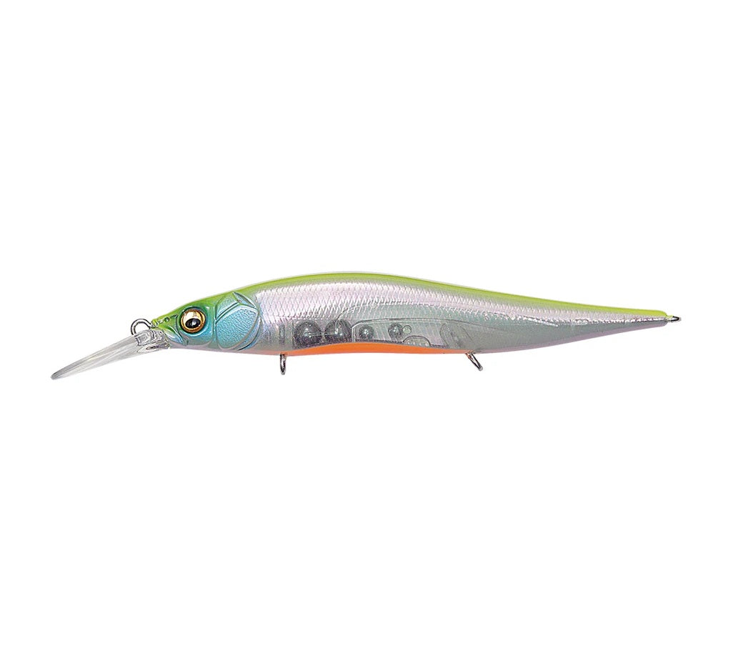 Once the closely-guarded secret of the pros, the Megabass Ito Vision 110 has quickly become a staple among professional and amateur anglers alike. Carefully crafted and precision engineered, it sets the standard for jerkbait performance - offering a one-of-a-kind darting action that continually cashes checks and puts fish in the boat. The Vision 110‘s advanced tungsten Multi-Way Moving Balancer System (PAT) not only fuels the Ito Vision 110’s unparalleled action and huge flashes, it also allows you to cast it like a bullet. Three Katsuage out-barb treble hooks also increase hook-setting percentages to maximize your strike to catch ratio.