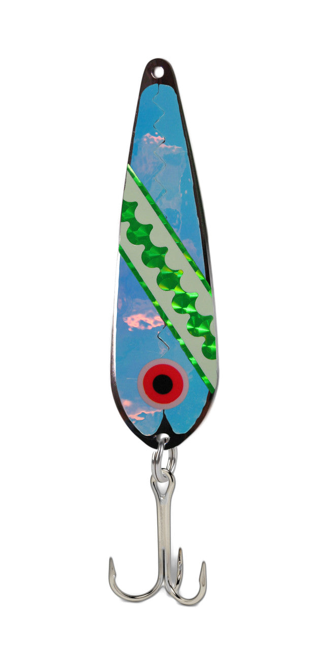 Pro King Spoons are handmade with top-quality materials here in the U.S.A. The plated blades are taped front and back and available in hundreds of fish catching color patterns. Each spoon is finished with an extra-sharp #1 VMC treble hook to bring your trophy to the net.