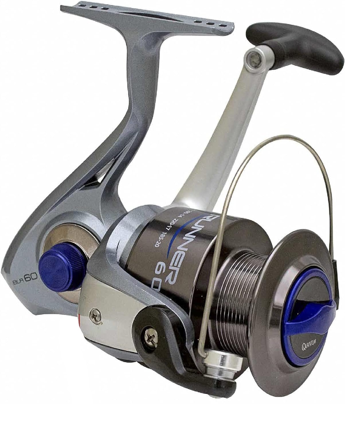 The Quantum Blue Runner Spinning Combo contains a 2-piece fibreglass rod with aluminum oxide DynaFlow™ guides and an extended EVA handle for efficient, heavy-duty use. Its reel features an anodized aluminum spool, stainless steel bail wire, and a corrosion-protection finish for durability.