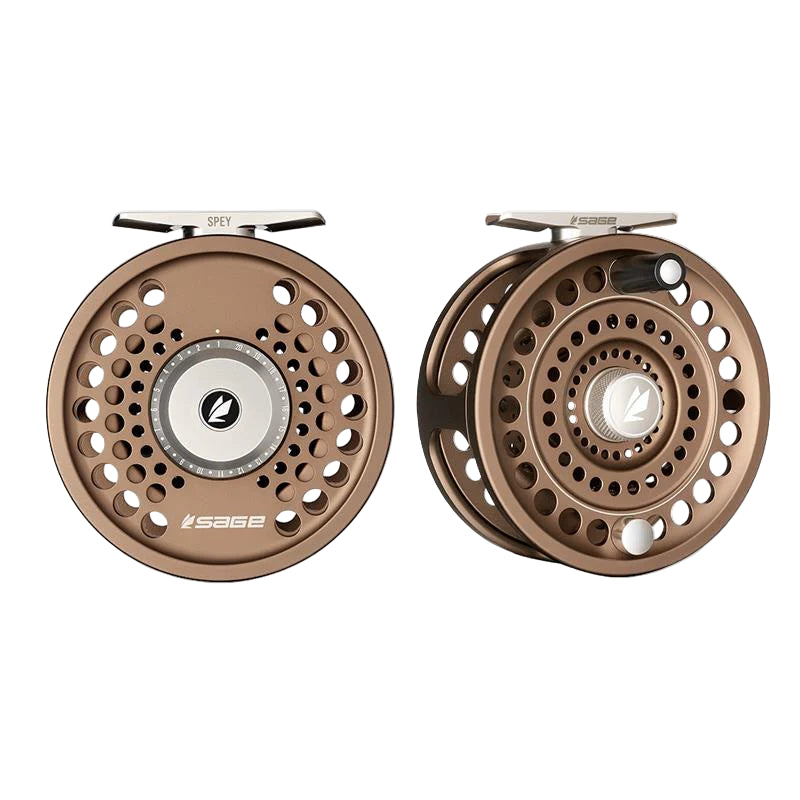 Sage’s new SPEY Reels are designed specifically for the anadromous angler, providing an ideal mix of enhanced, modern performance and refined, traditional design. Internally, SPEY Reels utilize a redesigned, sealed, carbon fiber disc and dual-clicker drag system that ensures dependability, eliminates unwarranted spool rotation, and offers exceptional resonance. Mass and balance were given equally-high attention in our design process as we updated model sizing to better align with matching Spey rods and we adjusted the location of the reel foot to provide uniform axial balance with the rod. A full-frame design eliminates the possibility of shooting lines slipping between spool and frame and the addition of a machined radius around the reel foot makes for comfortable wrapping of leader, tip, or tippet. Completing the package is a classic and elegant aesthetic of porting and laser engraving that Spey anglers can acknowledge and appreciate.