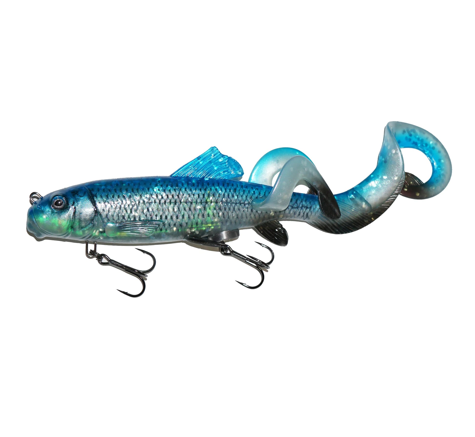 The Savage Gear X-Tail Sucker is a highly realistic imitation of a live sucker fish. Its lifelike profile, detailed print photo colors, and super swimming action make it an irresistible target for predatory fish. The bait features a big pulsing curtail and a unique double cross curtail, resulting in a tantalizing pull pause action that is sure to attract vicious strikes. With an added belly disc weight, this versatile bait can be customized to suit the conditions of the day.