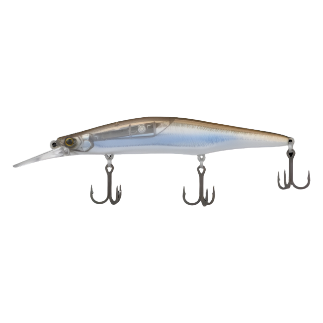 Powered by Shimano's BOOST CONCEPT lure technologies, the all-new Zumverno 115SP MR adds to the success of the Zumverno 95SP FB and expands Shimano's lineup of freshwater lures. The nose-down posture of Zumverno 115SP MR enhances live sonar return while the bill design imparts an erratic side-to-side darting action to mimic fleeing baitfish and helps deflect the lure off structure. Featuring Shimano's patented FLASH BOOST technology, the Zumverno emits an enticing flash during the retrieve and mimics a wounded baitfish — even on the pause. JET BOOST technology enhances the lure's casting range, increasing an angler's ability to cover more water. Shimano's SCALE BOOST technology leverages composite-pitch holograms to give the Zumverno lineup a realistic appearance, imitating lifelike baitfish patterns. The Zumverno is the preferred choice for forward-facing sonar fishing and excels at triggering suspended bass whether they are holding tight to cover or chasing baitfish in open water.