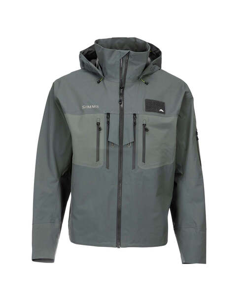 Your problems may all fade away the second your line hits the water, but the storm around you will rage on. Protect yourself like a pro from the elements with Simms G3 Guide™ Tactical Wading Jacket. Durable, lightweight 3-layer GORE-TEX® with water-tight cuffs provide a waterproof seal that keeps you dry even while tailing or releasing your catch of the day. Stash every piece of tackle in your arsenal, and warm your hands while you are at it, in 9 convenient pockets, including 2 micro-fleece lined hand pockets. The packable storm hood adjusts to fight the fiercest downpour. YKK water-resistent zippers, 4-point adjustable, tuckaway storm hood, watertight shingle cuff, 2 integrated retractors, 1 fly patch, 1 net Dring and hem closure.